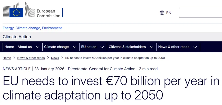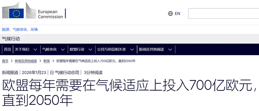 研究发现,每年需投入的700亿欧元适应中,约300亿欧元用于基础设施,210亿欧元用于生态系统,120亿欧元用于粮食安全。