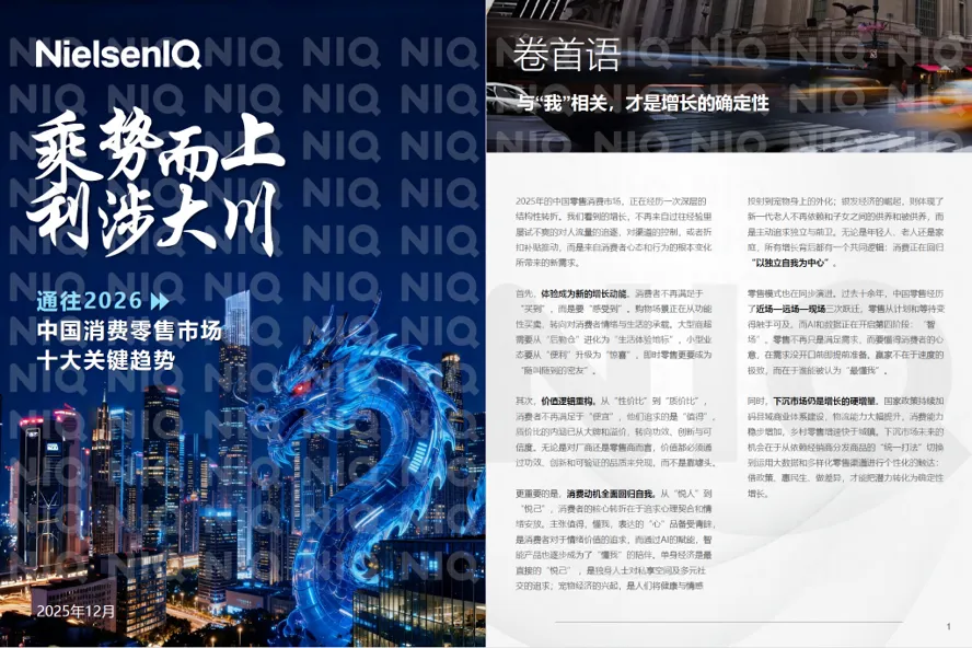 本文内容梳理自尼尔森IQ (NIQ)发布的报告《通往2026中国消费零售市场十大关键趋势》。版权归原作者所有,本文仅供行业研究参考。