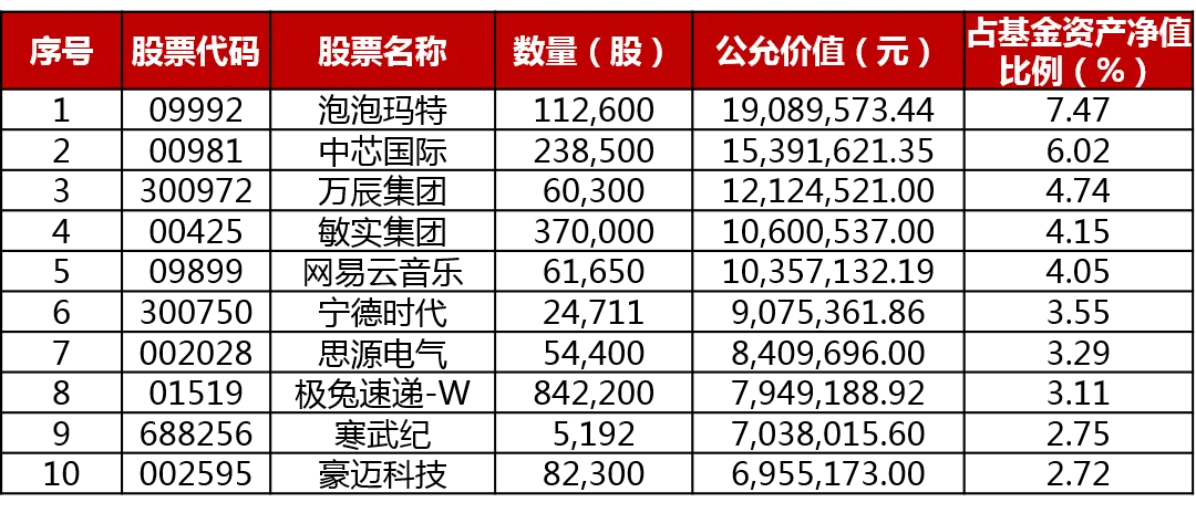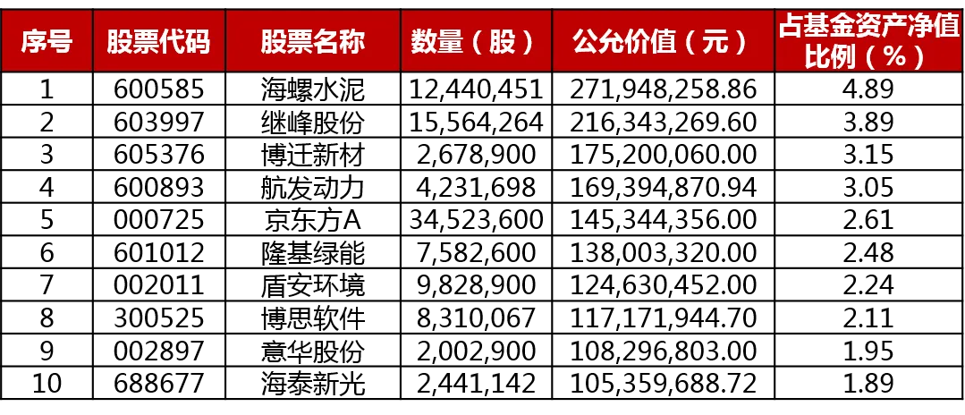 注:持仓数据来自产品定期报告,不代表任何形式的个股推荐。历史持仓仅代表既往投资,不代表未来投资情况。