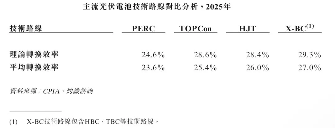 目前全球主流光伏电池技术路线主要包括传统的P型PERC技术,以及以TOPCon、HJT和X-BC为代表的新一代N型技术。2025年N型电池在转换效率上已全面超越P型电池。具体而言,TOPCon、HJT、X-BC电池的平均转换效率分别达到25.4%、26.0%和27.0%,更高的光电转换效率也对导电浆料提出更高的要求。