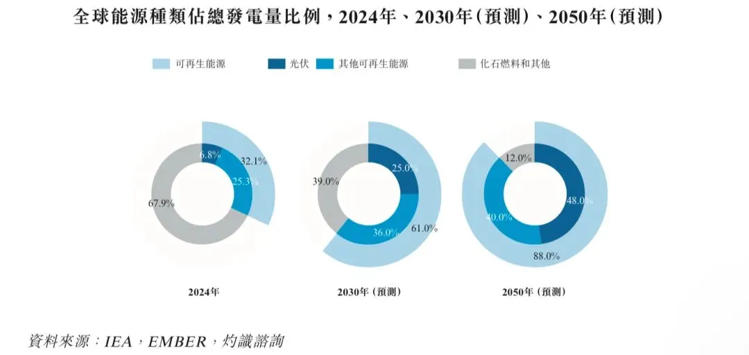 在全球碳中和目标已成为共识的背景下,推动能源结构向高效低碳转型显得尤为迫切,可再生能源的重要性日益凸显。其中,光伏发电凭借其资源丰富、地理限制小、应用场景广泛、商业化成熟度高以及发电成本持续下降等显著优势,已成为最具竞争力的可再生能源供应方式之一。2024年,光伏发电占可再生能源总发电比重达21.2%,预计到2050年该比例将上升到54.5%。