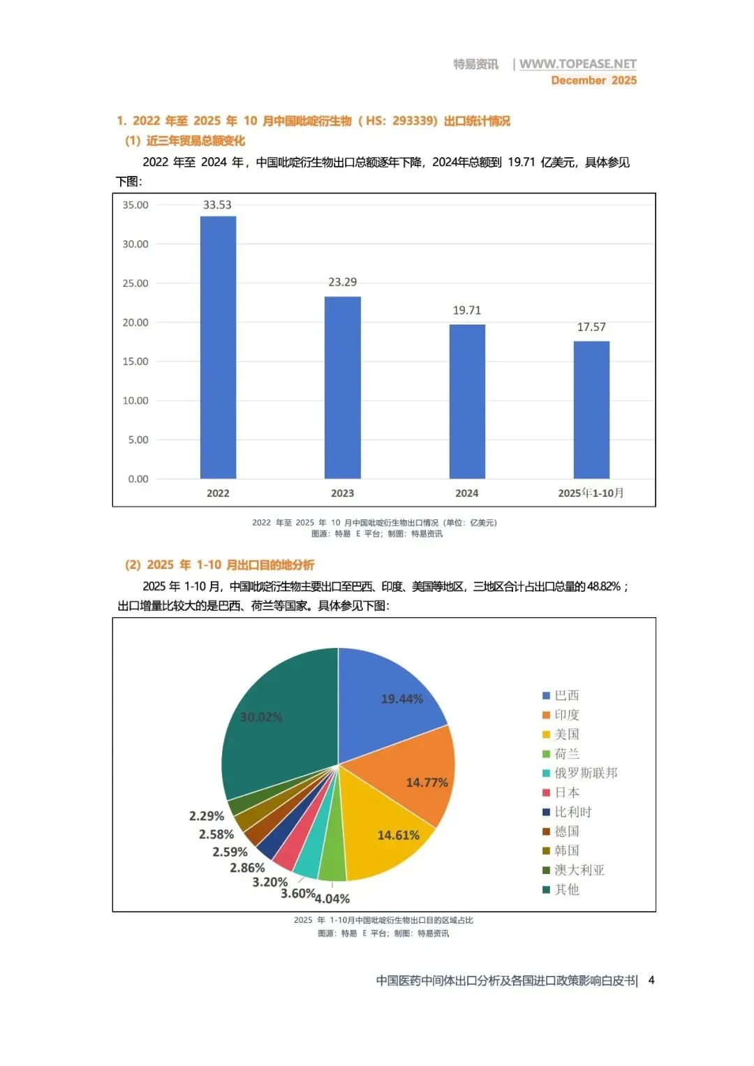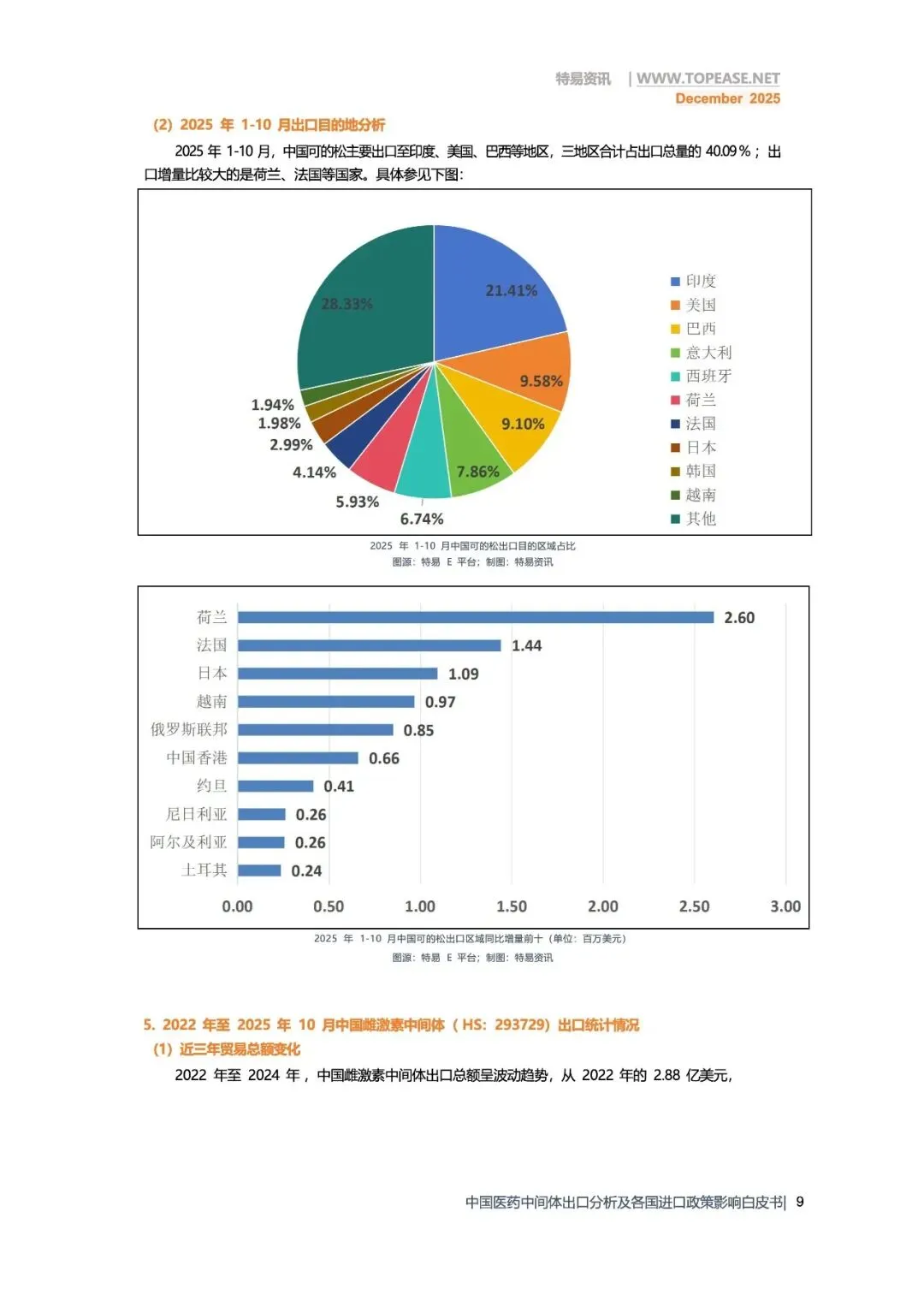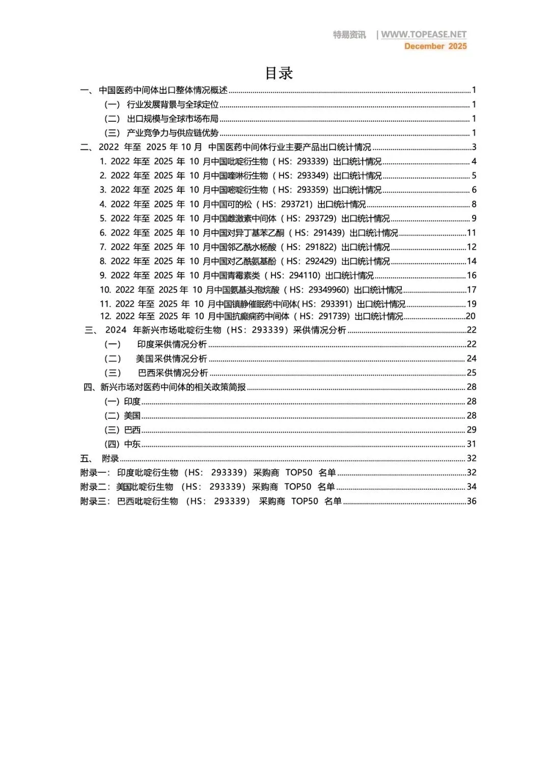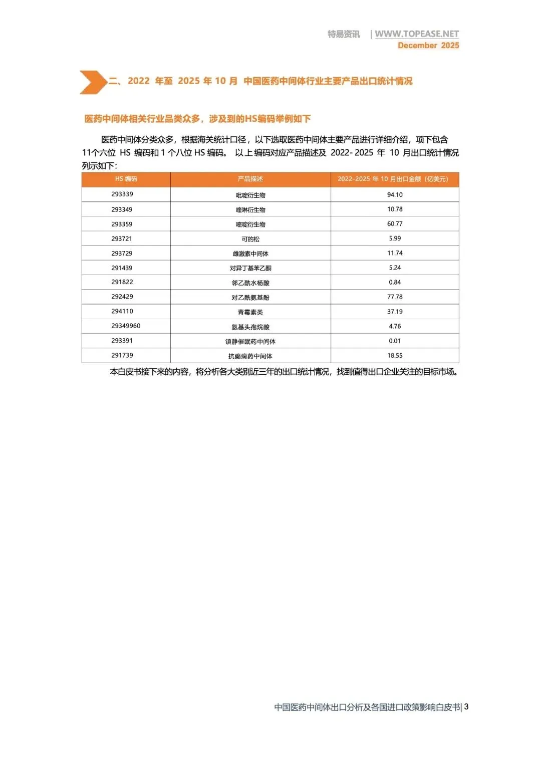 报告名称:《2025年中国医药中间体出口全景分析白皮书-破解政策难题 深挖全球红利》