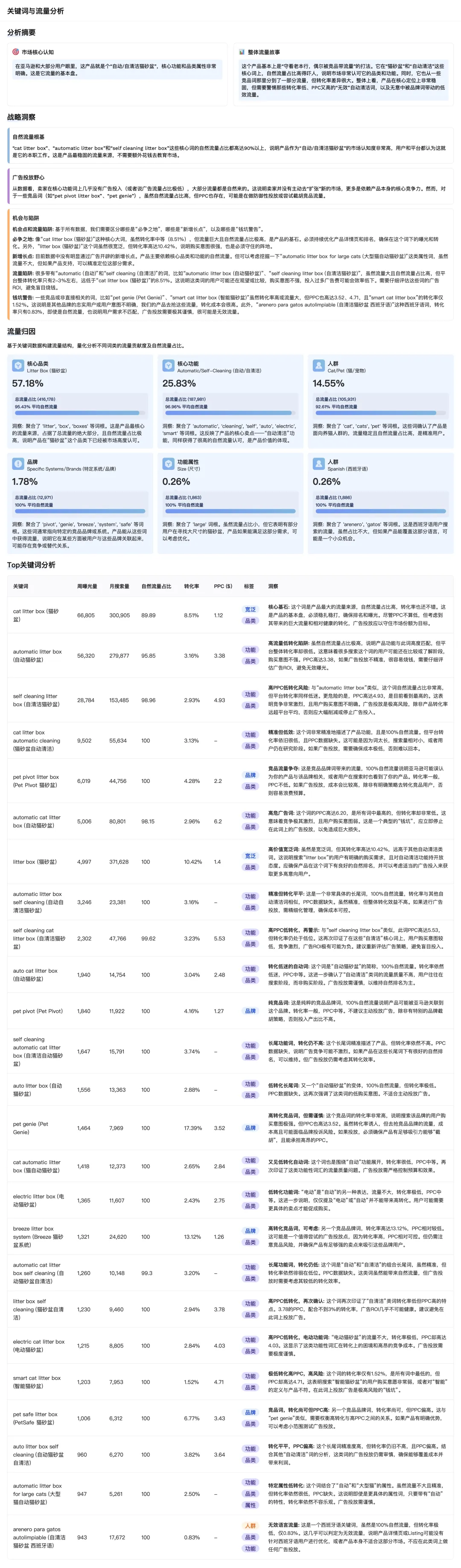 ·卖家的算盘:卖家试图通过简洁明了地列出自清洁功能、附赠配件以及适用范围,来快速抓住目标用户。强调“Semi Automatic”是为了与全自动产品作区分,同时突出其比普通猫砂盆更智能便捷。明确