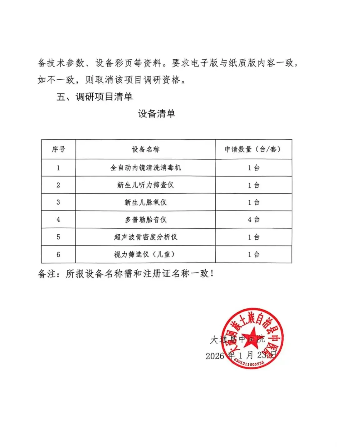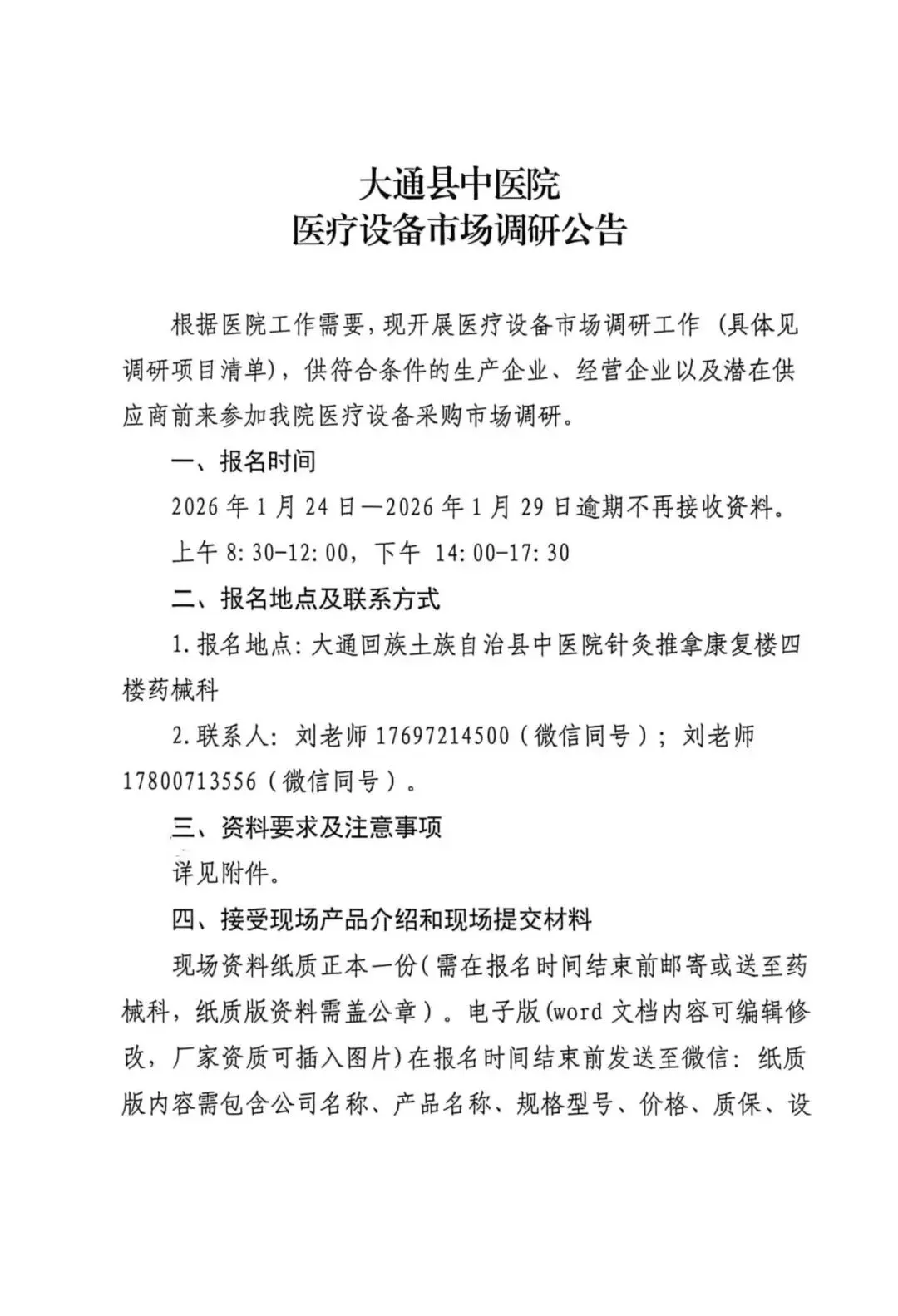 【公告】大通县中医院医疗设备市场调研公告