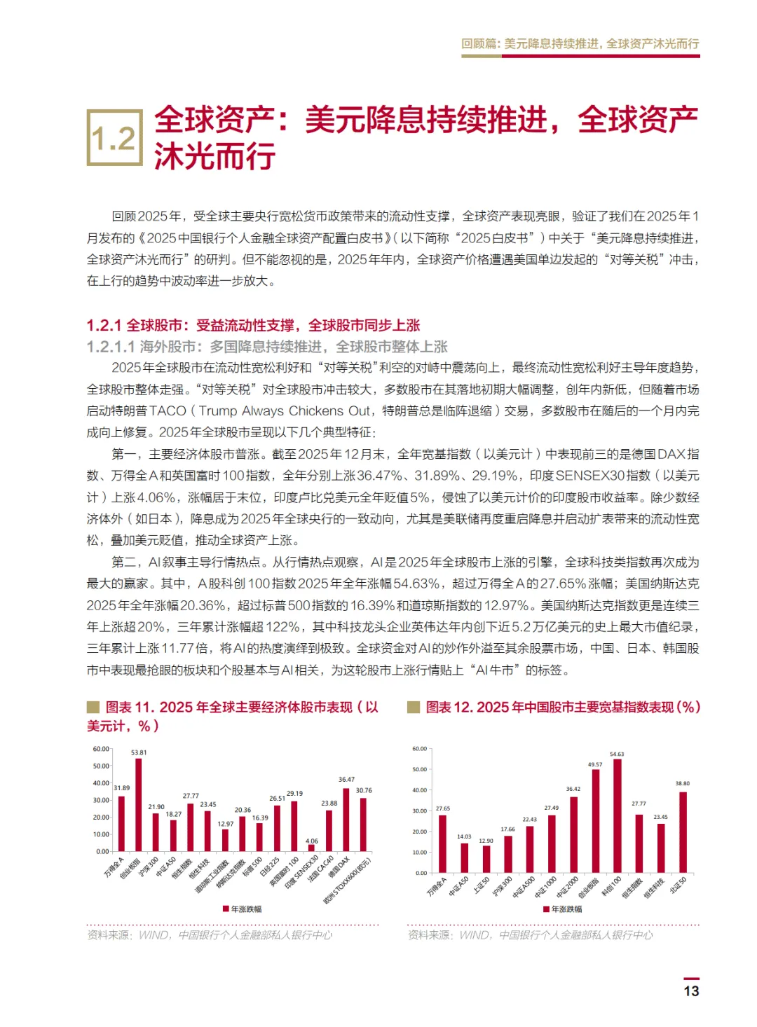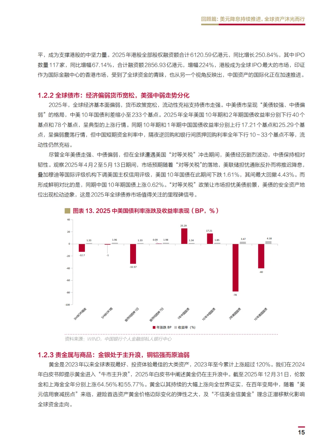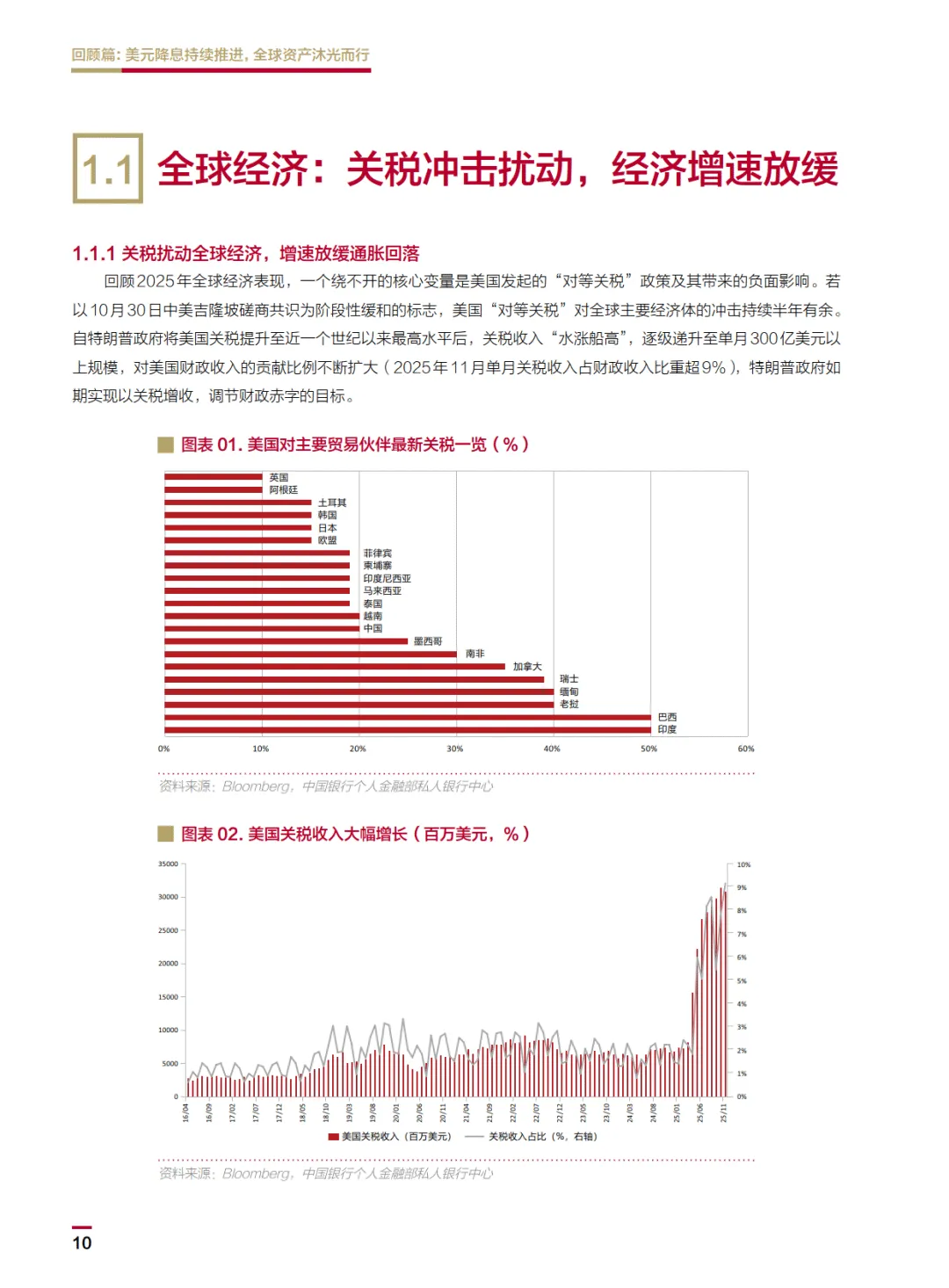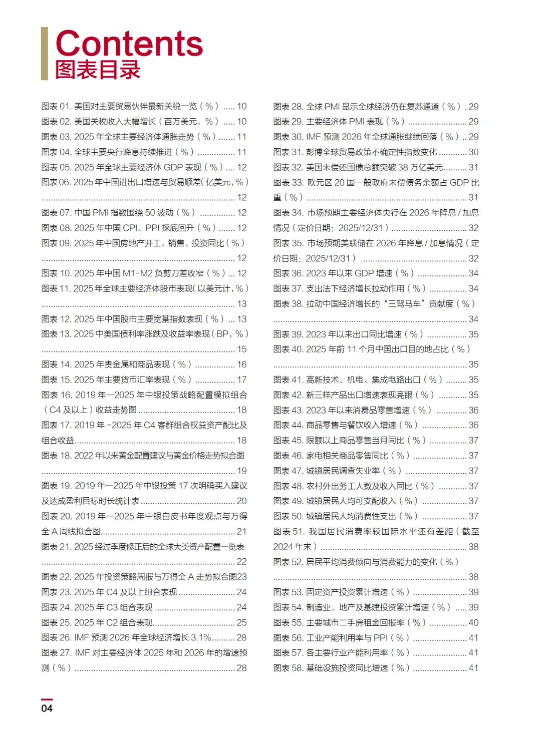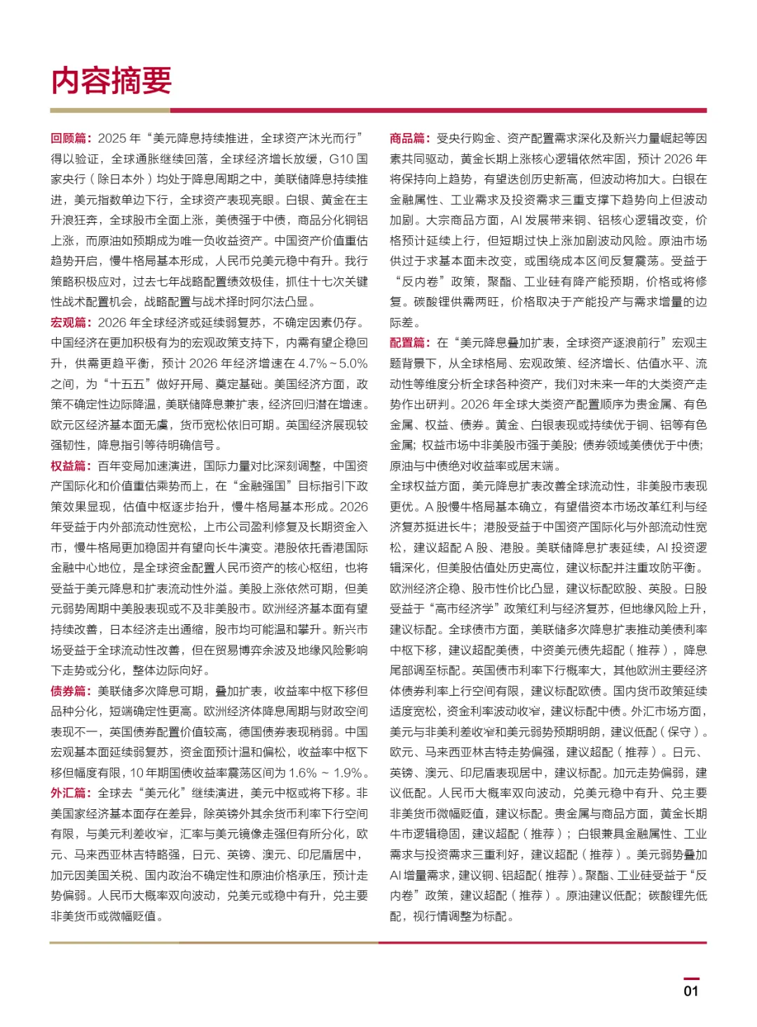 2026 年全球经济将延续弱复苏态势,不确定因素仍存,大类资产配置呈现鲜明结构性特征。中国银行建议配置顺序为贵金属、有色金属、权益、债券,原油与中债绝对收益率或居末端。