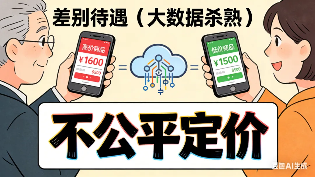 差别待遇(大数据杀熟):对新老用户实行不平等交易价格,无视消费者公平交易权,本质是利用数据优势进行歧视性定价,而反垄断法明确禁止经营者利用数据优势从事垄断行为。