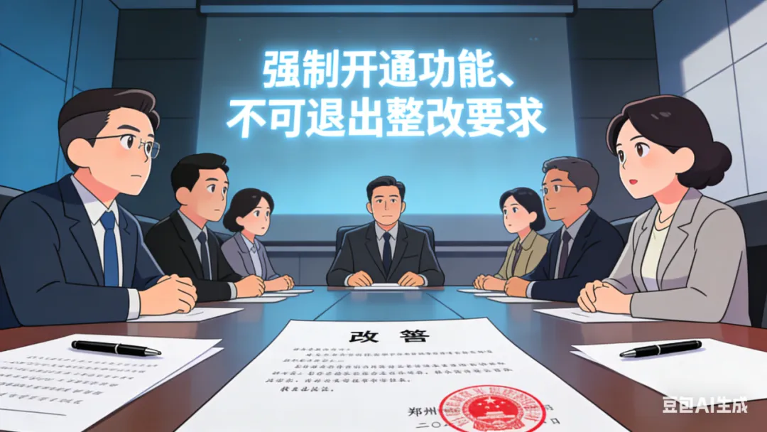 9月,因为有强制开通功能、开通后没法退出这些不合理限制,郑州监管部门点名要求它彻底整改。