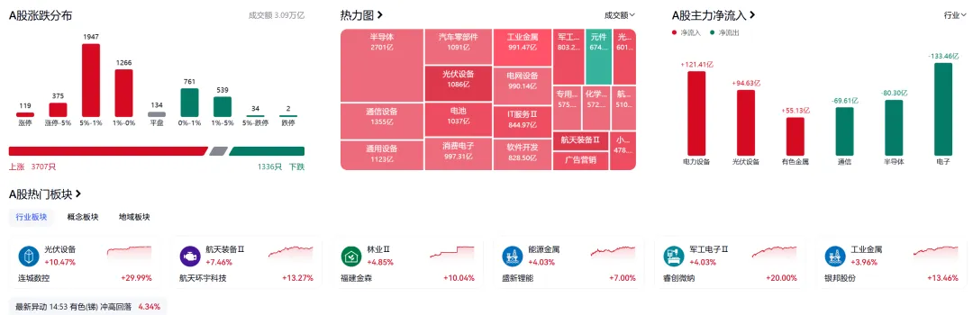 电力早盘动了一下,受太空光伏爆发带动,光伏设备板块涨超10%,*中国西电也跟着冲高。