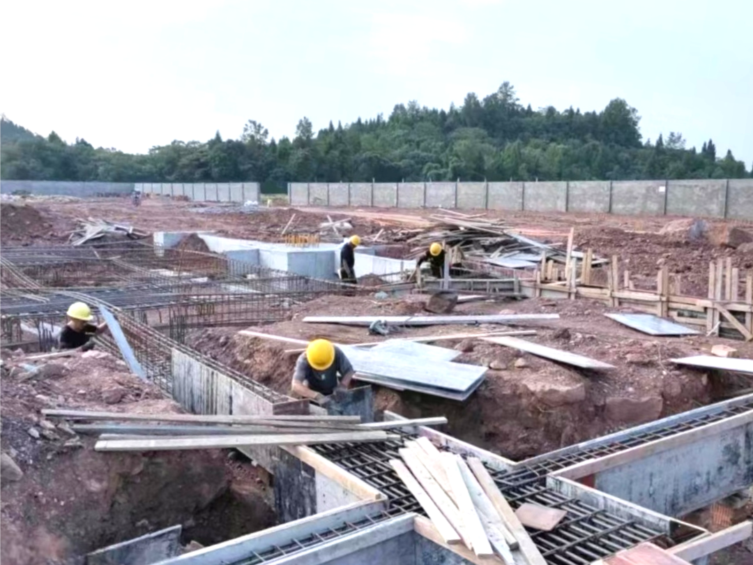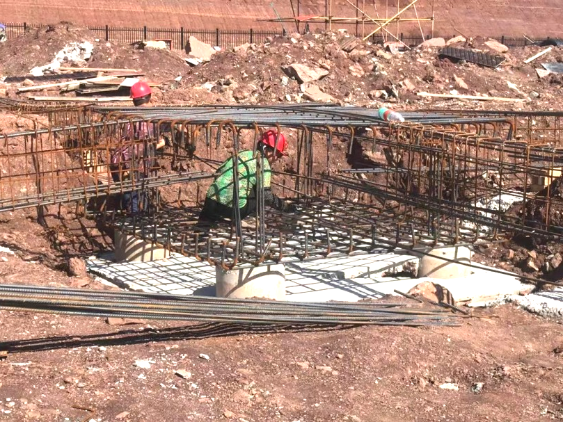 ●绑扎钢筋、地下室基础砖胎模砌筑