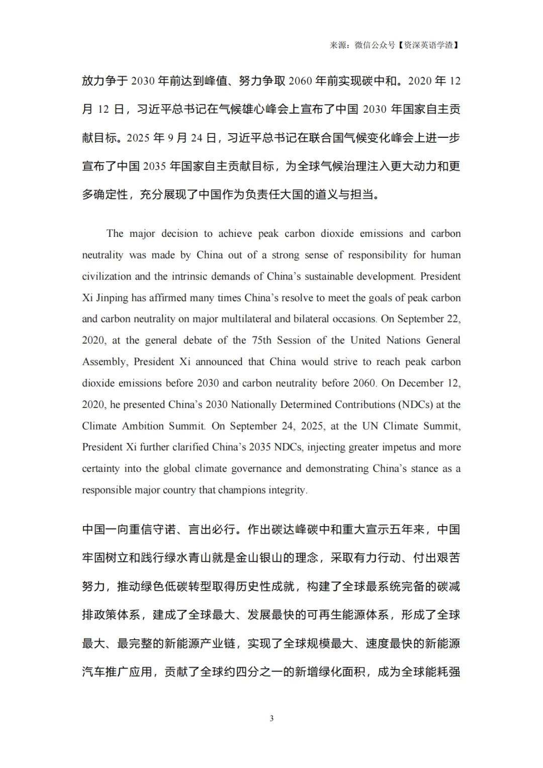 中国明确 2030 年前碳达峰、2060 年前碳中和的目标,2025 年进一步宣布 2035 年国家自主贡献目标,彰显负责任大国担当。