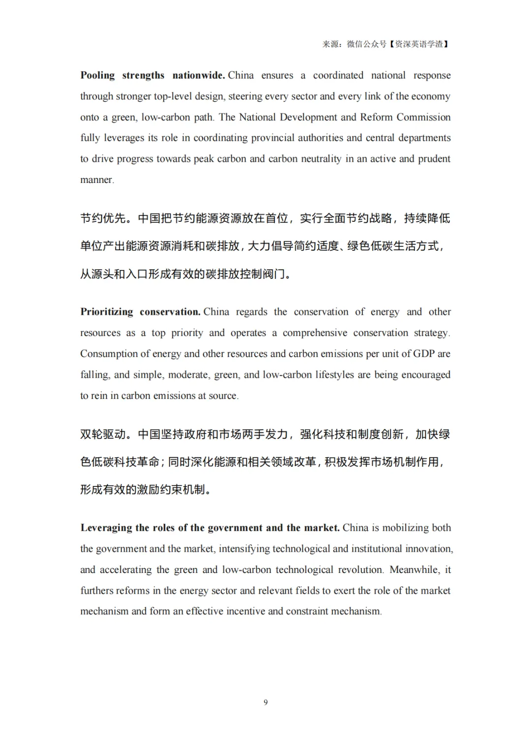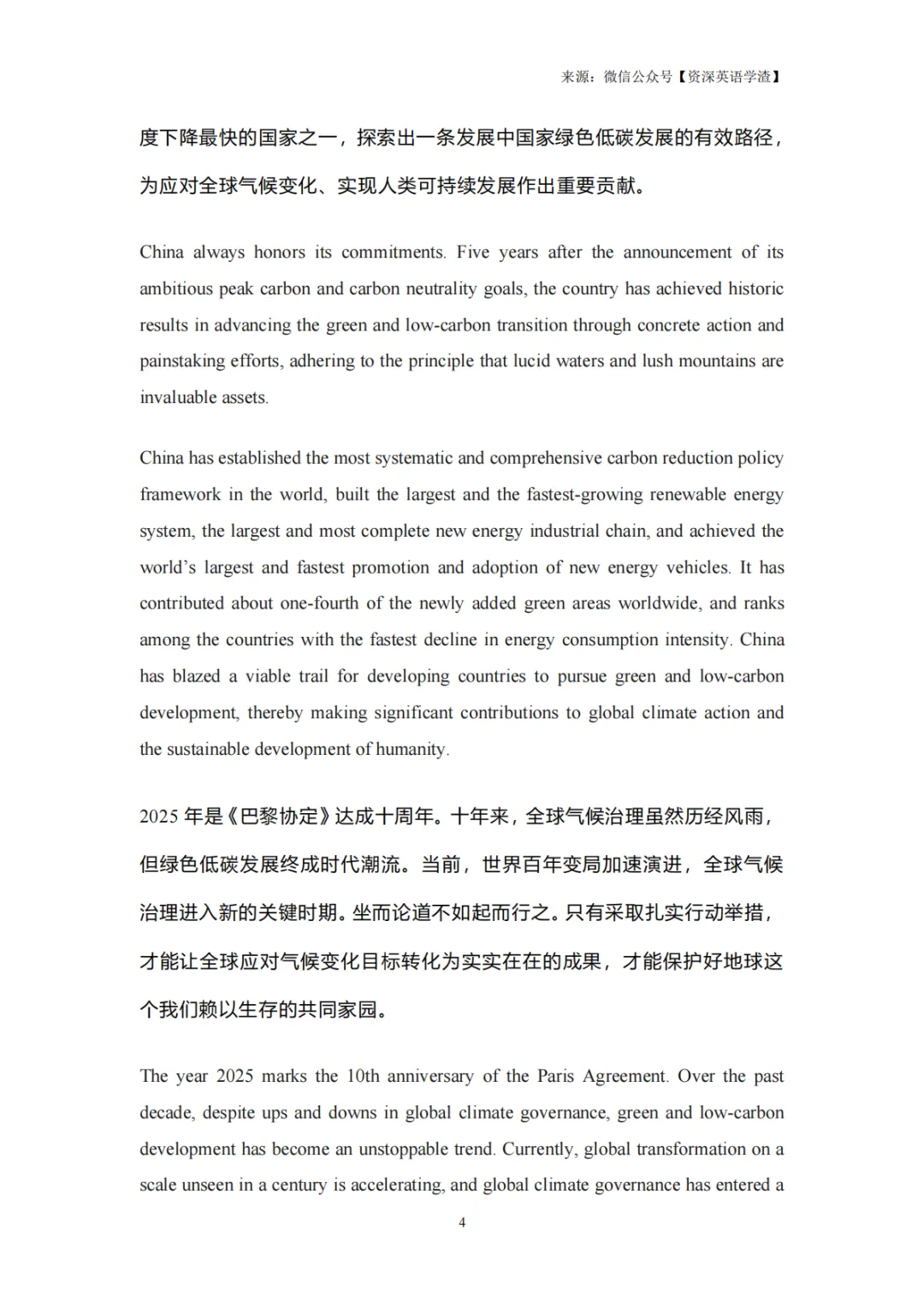 中国深度参与全球气候治理,推动《巴黎协定》实施,深化 “一带一路” 绿色合作,向全球供应大量低碳装备,开展南南合作支持发展中国家应对气候变化。