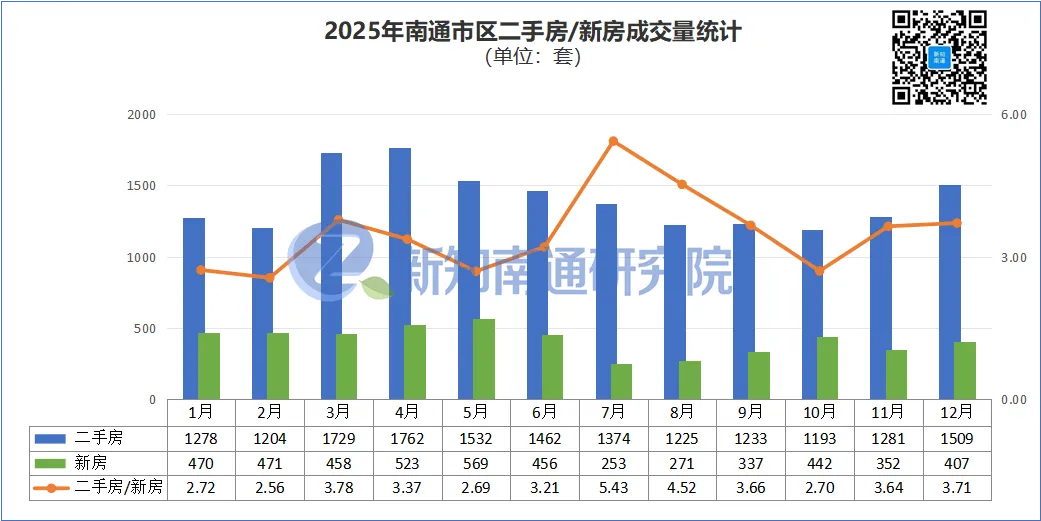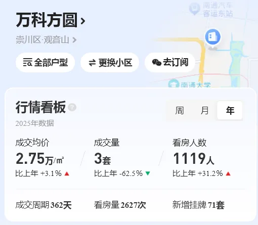 据南通市房地产市场监测分析中心数据显示,2025年南通市区(不含通州区、海门区)新房累计成交备案5009套,同期二手房累计成交备案16782套。