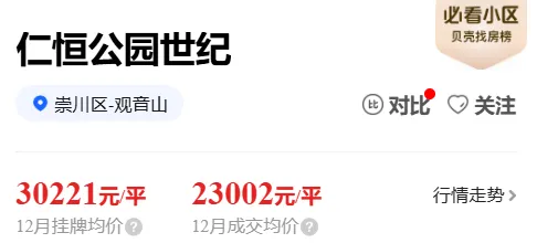 仁恒公园世纪25年共成交了21套二手房,成交均价2.3万/㎡,同比下跌12.1%。