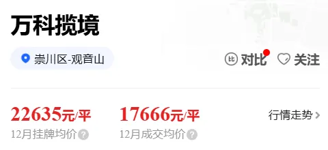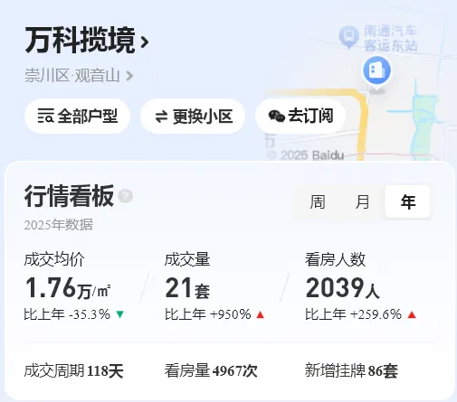 万科揽境25年成交21套,成交量暴涨950%,但成交均价仅1.76万/㎡,大跌35.3%,呈现出典型的“以价换量”特征。