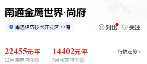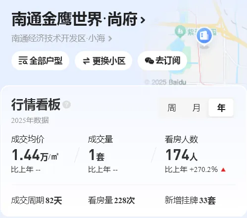 金鹰世界尚府同样25年首次录得二手房成交,成交均价1.44万/㎡。