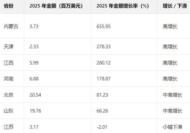 核心优势:政策支持(如内蒙古航空口岸绿色通道)、产能释放(江西)、物流优化(天津);