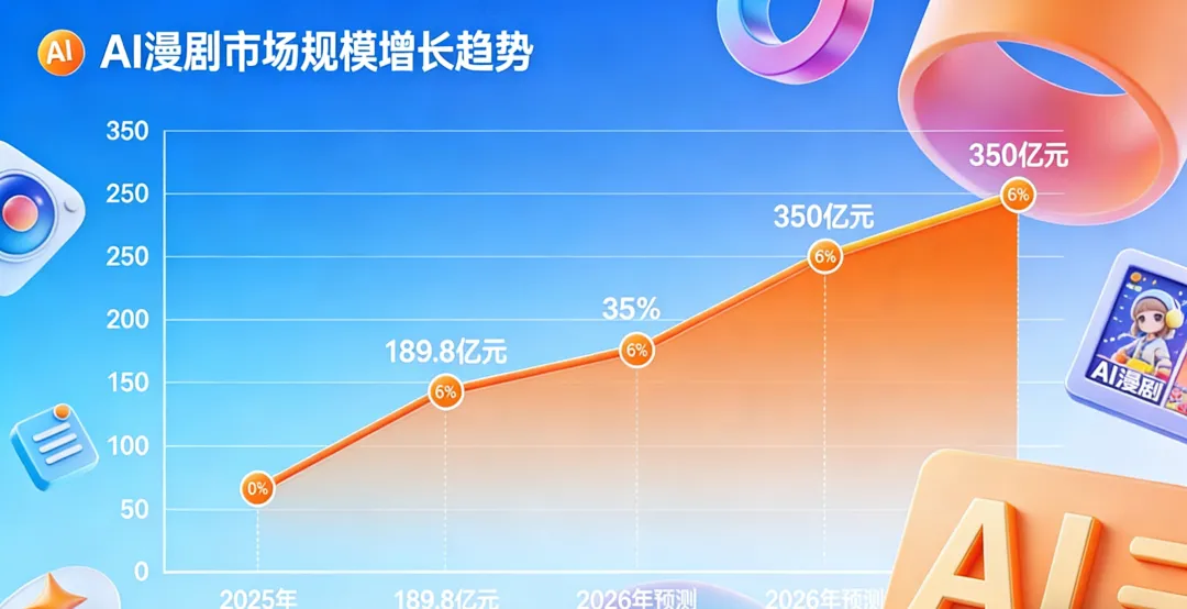 2025 年,AI 漫剧以 189.8 亿元的市场规模正式开启产业 “元年”,凭借惊人的增长速度成为文娱领域最耀眼的新赛道。步入 2026 年,行业告别了初期的 “野蛮生长”,迈入 “技术精进、内容提质、生态革新” 的关键转型阶段。据行业预测,2026 年市场规模将攀升至 350 亿元,同比增长 75%,其中精品内容占比超过 60%,女频赛道、海外市场与 IP 全链路变现成为驱动行业增长的核心引擎。与此同时,内容同质化、版权争议、复合型人才短缺等问题依然存在,行业正面临从 “规模扩张” 向 “质量提升” 的关键跨越。本文将从产业发展现状、核心增长机遇、现存突出挑战及未来进化趋势四个维度,全面解析 AI 漫剧赛道的发展脉络与竞争格局。