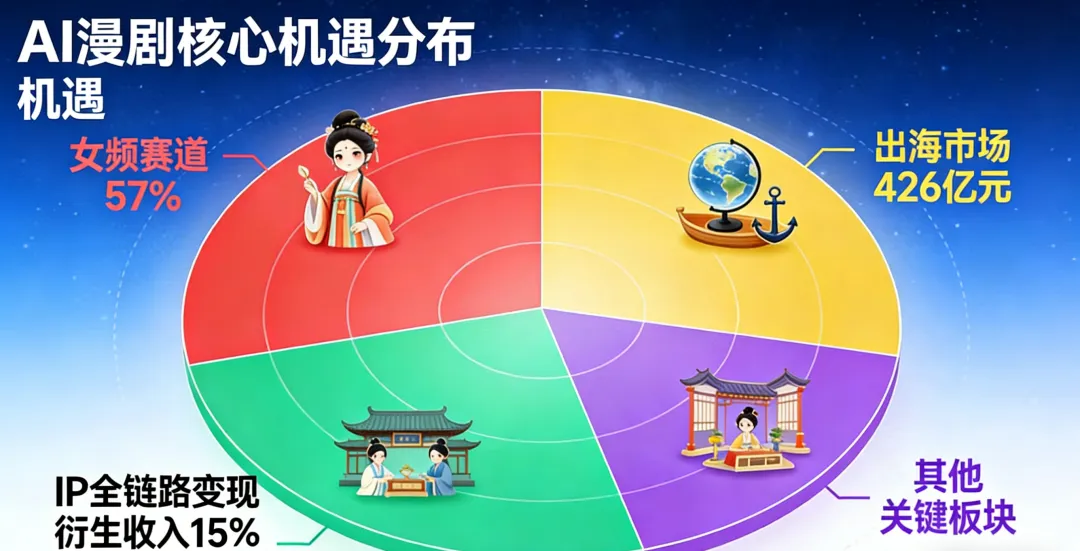 2026 年,AI 漫剧赛道的增长动力将从 “单一产能扩张” 转向 “多元价值挖掘”,女频赛道、海外市场与 IP 全链路变现成为三大确定性增长风口。