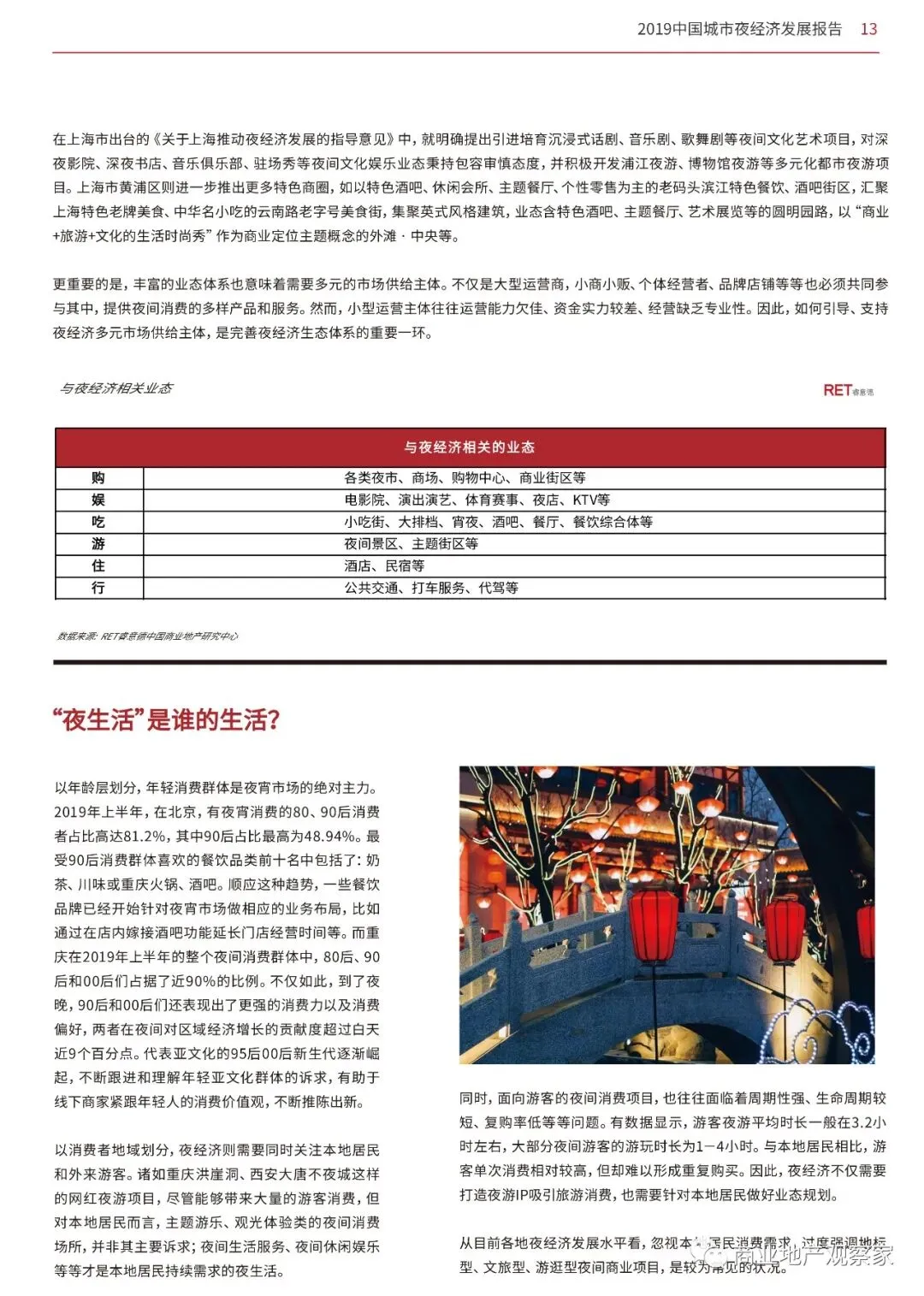 近日,全联房地产商会商业地产工作委员会、RET睿意德、腾讯位置服务联合发布《2019中国城市夜经济发展报告》,旨在通过代表城市夜经济相关数据,透析我国各类型城市夜经济发展的新机遇,为夜经济发展提供思路与启发。