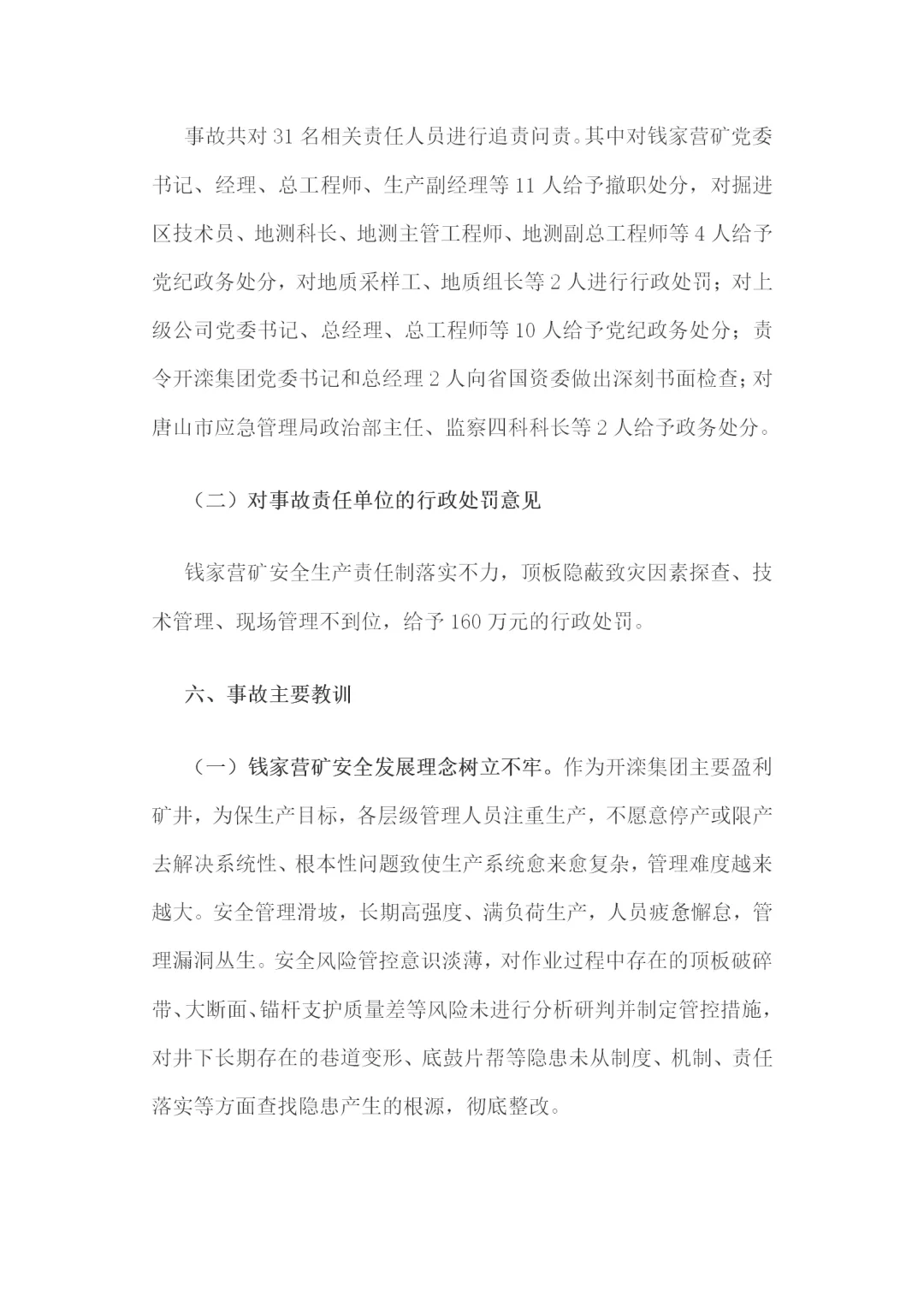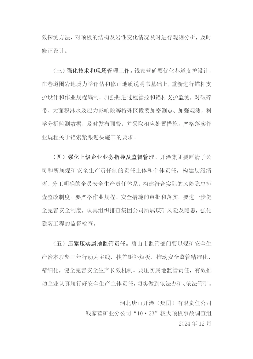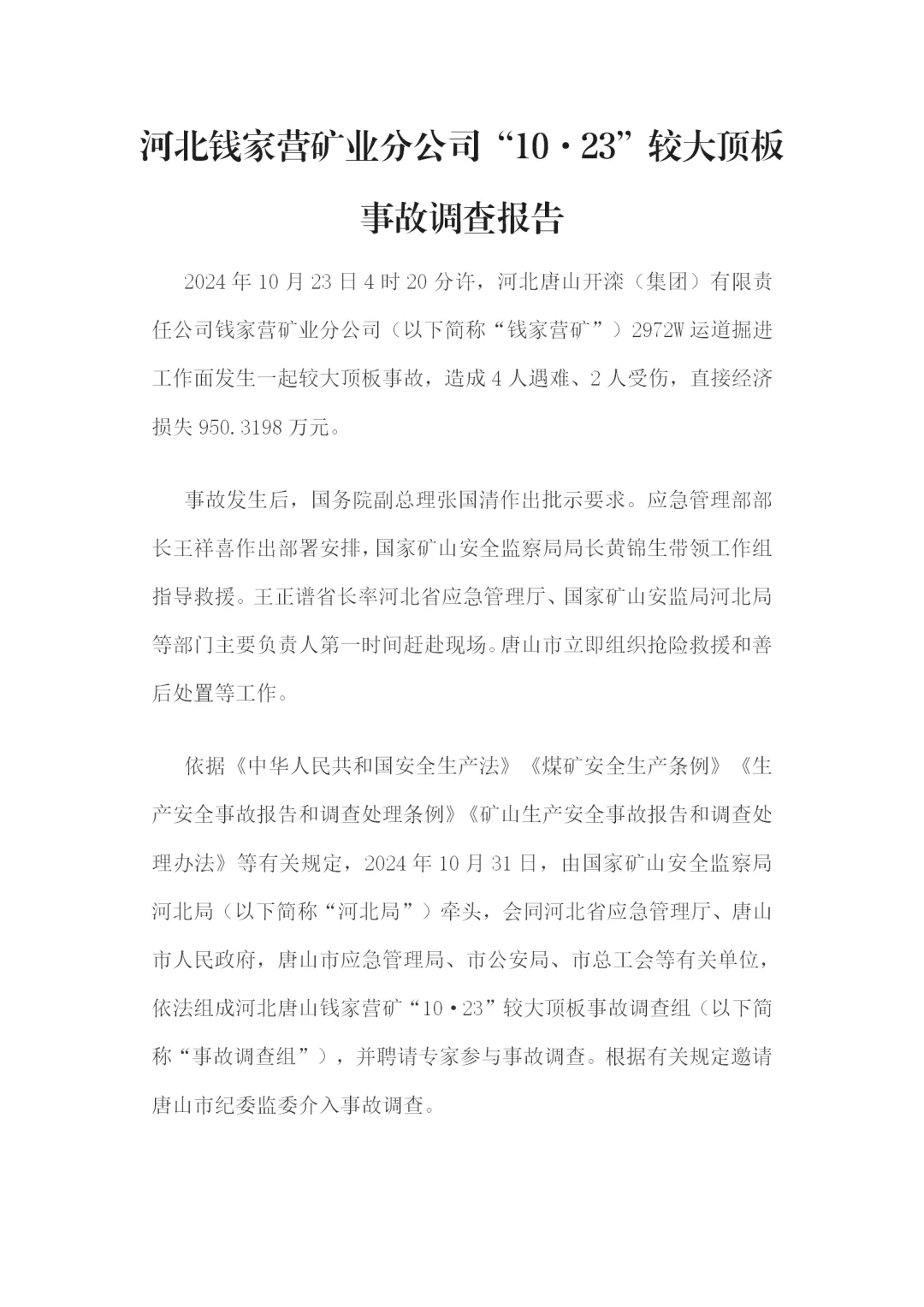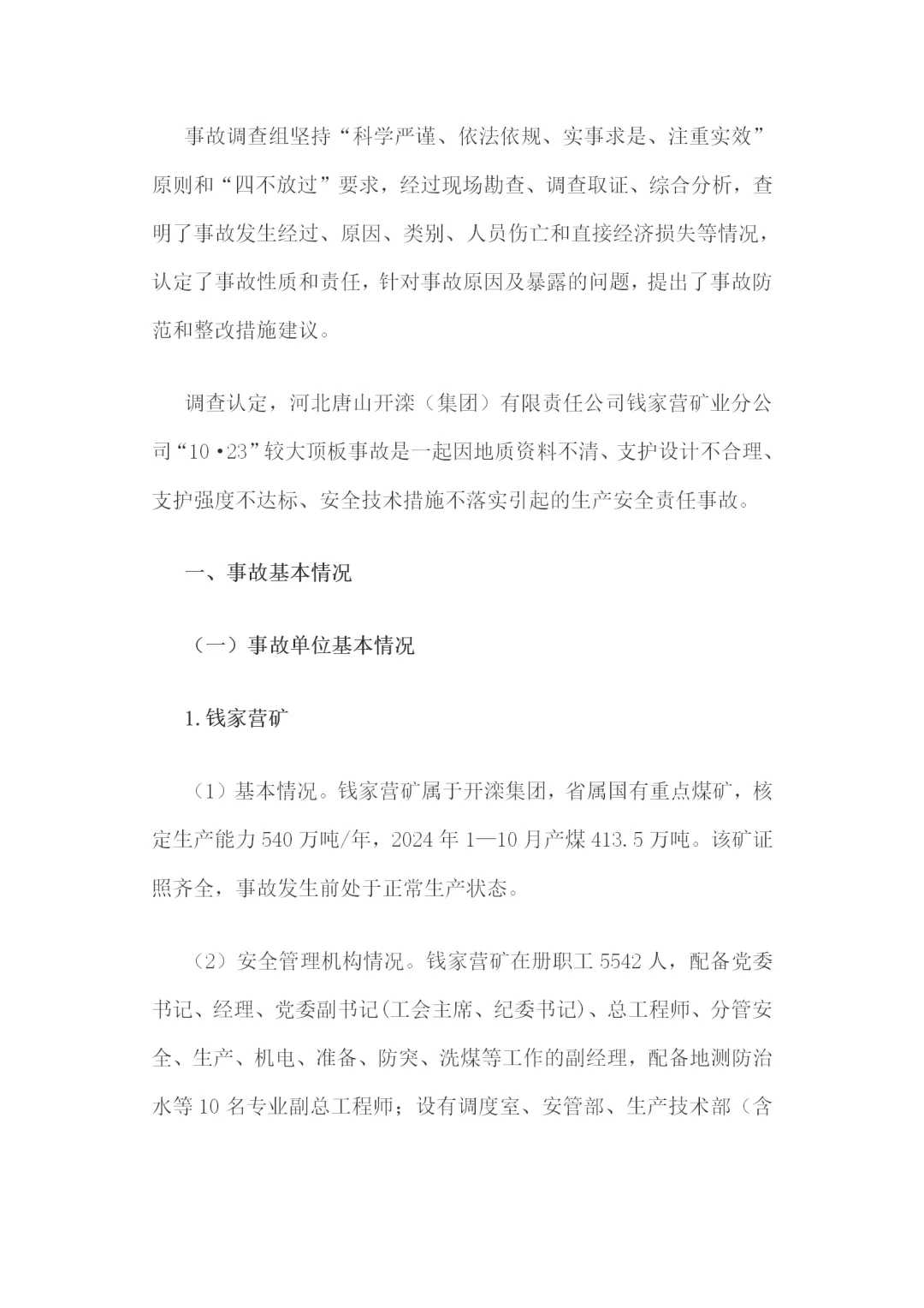 钱家营矿业“10·23”较大顶板事故调查报告