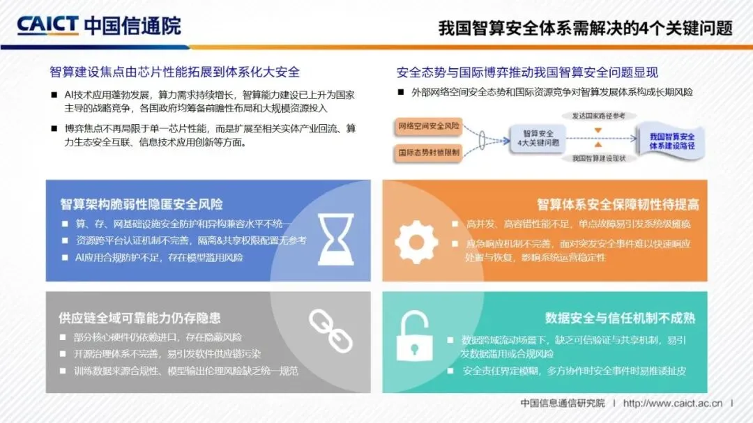 作为人工智能时代的新型计算基础,智算已经成为各国竞争的核心战略。2025年,我国智算的规模达到1037.3 EFLOPS,比去年增加42%,而智算的安全问题也日益突出,建立一个安全可靠的智算系统已成为业界的共识。