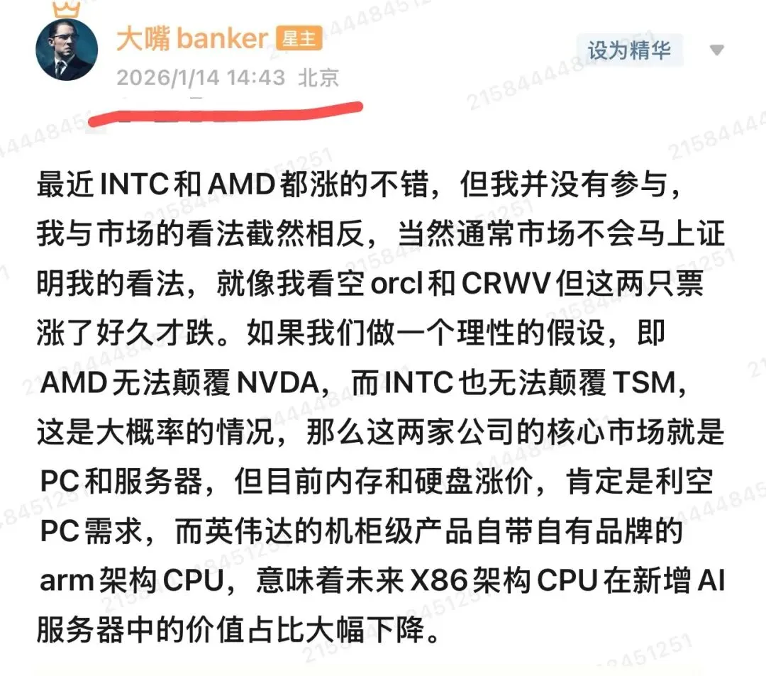 事实恰好相反,CPU的未来黯淡无光。因内存暴涨PC需求下降,更致命的是英伟达在机架级B系列和下一代R系列中均集成自有的ARM架构CPU,导致新增AI数据中心投资需求中,第三方CPU的需求和价值占比急剧下降。