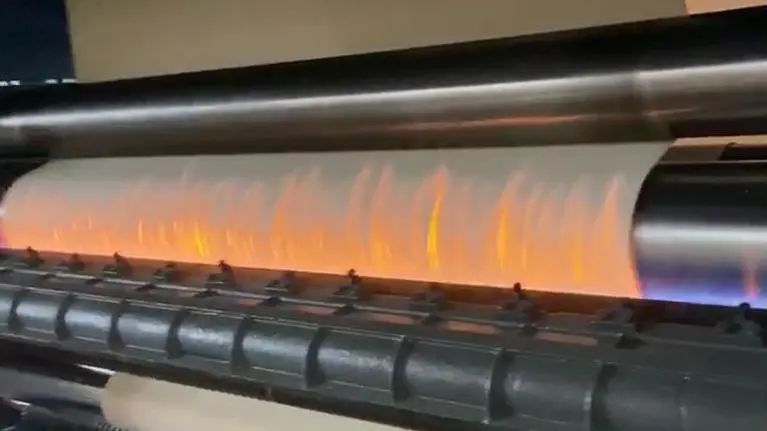 烧毛的目的在于烧去布面上的绒毛,布面达到光洁,防止在染色、印花时因绒毛存在而产生染色不匀等问题。可以改善布面光泽,提高光洁度以及抗起毛起球性能(特别是化纤织物)。织物烧毛是将织物平幅快速通过高温火焰,或擦过赤热的金属表面,这时布面上存在的绒毛很快升温,并发生燃烧,而布身比较紧密,升温较慢,在未升到着火点时,即已离开了火焰或赤热的金属表面,从而达到烧去绒毛,在火焰处需两正两反火口,根据不同品种的特性,调整火焰温度。
