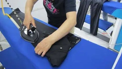 成衣制成后,经过熨烫处理,达到理想的外形,使其造型美观。
