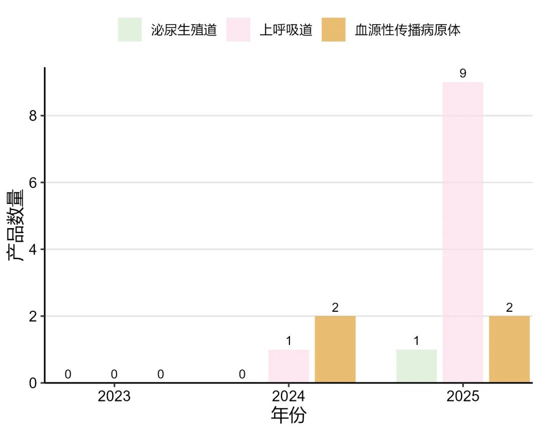耐药检测产品由2023年的2款跃升至2025年的11款,每年获批的产品数量呈倍数级增长趋势。