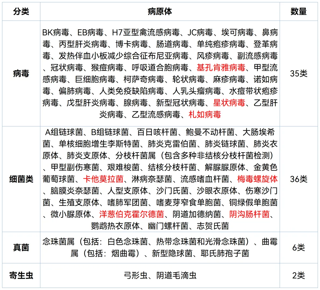 2025年拓展了基孔肯亚病毒、星状病毒、札如病毒、卡他莫拉菌(3款相关产品)、梅毒螺旋体、洋葱伯克霍尔德菌(2款相关产品)及阴沟肠杆菌共计7种病原体。(统计时,同时统计了国产和进口产品)