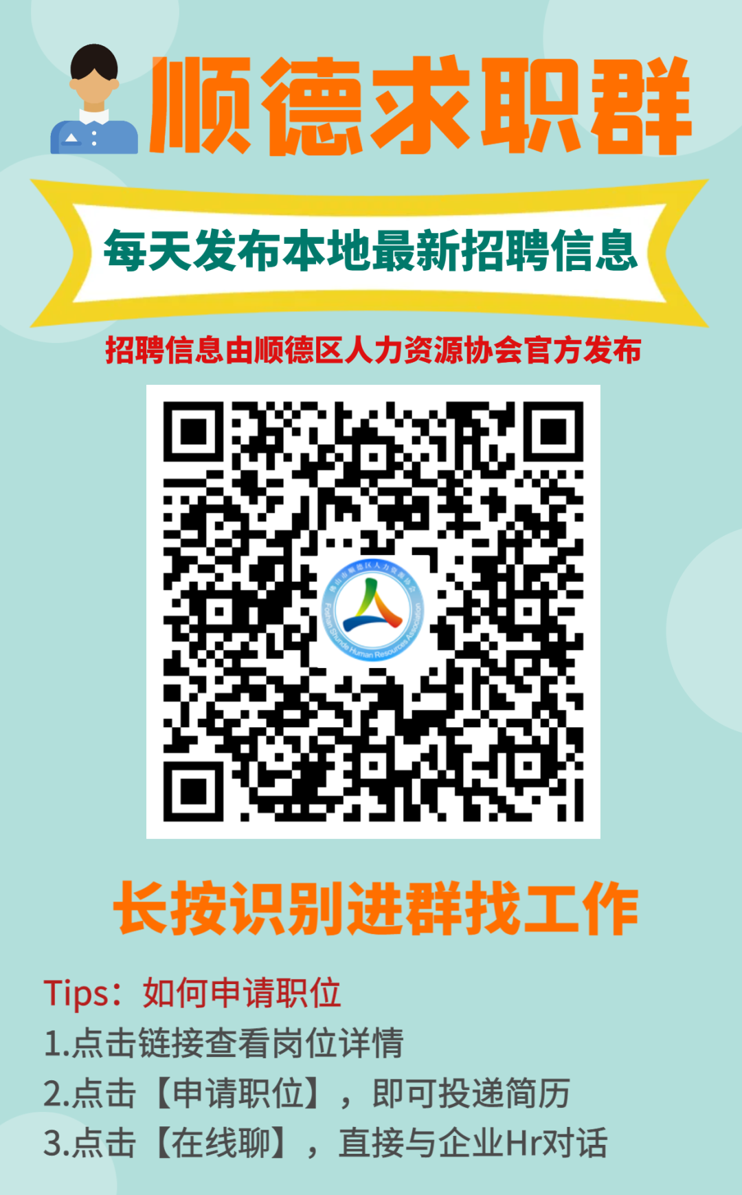 添加顺德人才网小助手“网花”