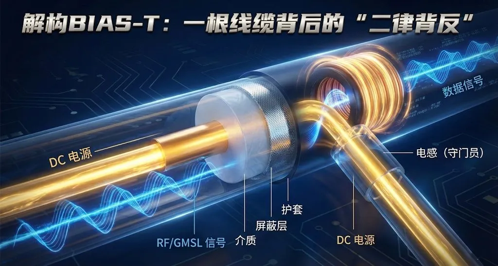 Bias-T电路是一个三端口网络,其核心功能是在同一根同轴电缆上实现射频(RF)信号与直流(DC)电源的分离与合成。