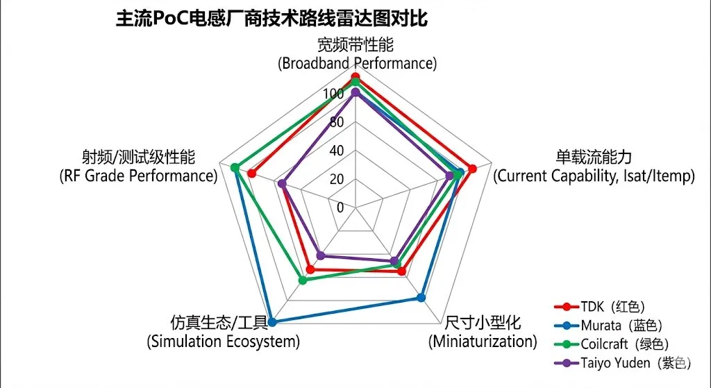 通过对TDK、村田制作所(Murata)、Coilcraft(线艺)等行业巨头的竞争格局分析,我们发现市场正从单纯的“多电感级联”方案向“宽频带单电感”方案演进。工程师的痛点已从基本的阻抗匹配,转移到了热管理、EMC(电磁兼容)合规性以及在极小PCB空间内的性能权衡。