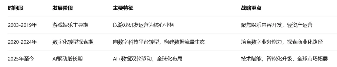 游戏娱乐主导期(2003-2019年):公司早期以网络游戏开发和运营为主营业务,依托《傲剑》、《飞升》、《苍穹变》等核心产品在游戏市场占据一席之地。然而,随着行业竞争加剧和商业模式变革,公司面临增长瓶颈,亟需战略转型。