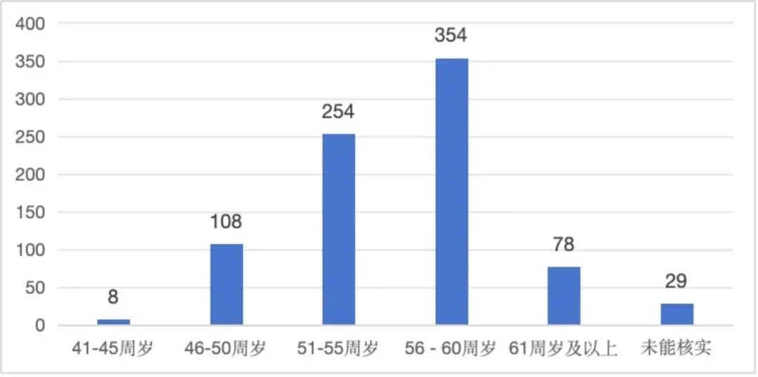 根据公开数据显示,总体来看,831位现任大学校长的年龄都在44周岁以上,目前没有44周岁以下的大学校长。除29位校长的年龄未能核实之外,在任校长的平均年龄约为56周岁,最大年龄为74周岁。其中,41-45周岁的8人,占比为0.96%;46-50周岁的108人,占比为13.00%;51-55周岁的254人,占比为30.57%;56-60周岁较为集中,共354人,占比为42.60%;61周岁及以上的78人,占比为9.39%,未能核实年龄信息的大学校长29人,占比为3.49%。