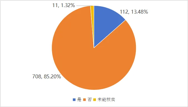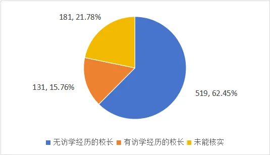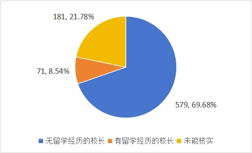 831位大学校长中,有112位是其所任职院校校友,占比约13.48%;有708位校长为非校友,占比约为85.20%;另有11位校长的相关信息未能核实。