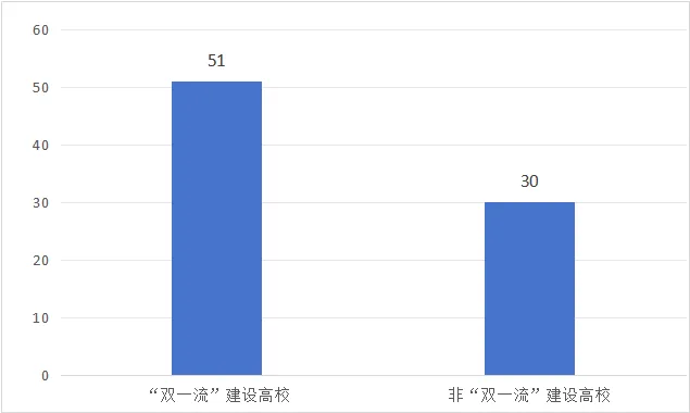 在81位院士校长中,有51位任职于“双一流”建设高校,占比62.96%;有30位任职于非“双一流”建设高校,占比37.04%。
