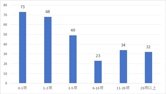 规划与制度类是指组织拟订和实施学校发展规划、基本管理制度、重要行政规章制度、重大教学科研改革措施、重要办学资源配置方案的动态,主要关键词包括“十三五”“十四五”“规划”“战略”和“年度工作计划”等。根据公开数据显示,831位大学校长中,有629位校长在任期间没有关于规划与制度类的新闻动态,占比75.69%;183位校长在任期间此类新闻为1-10条,占比22.02%;13位大学校长在任期间此类新闻数为11-20条,占比1.56%;在任期间拥有20条以上此类新闻动态的大学校长数有5位,占比0.60%;50条以上此类新闻动态的大学校长有1人,占0.12%。根据统计,831位校长年均规划与制度类新闻数最大值为4.77条,平均值为1.1条。