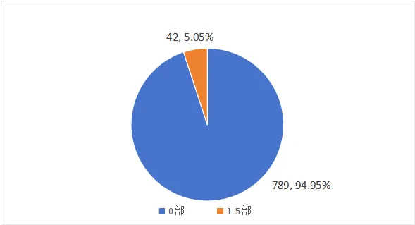 图40显示,从校长在任期间著作出版的数量来看,非教育管理类著作多于教育管理类著作。其中,在校长出版的教育管理类著作中,出版数最多的校长共出版著作5部。未出版教育管理类著作的校长有789人,占比94.95%;校长在任期间出版1-5部此类著作的有42位校长,占比5.05%。