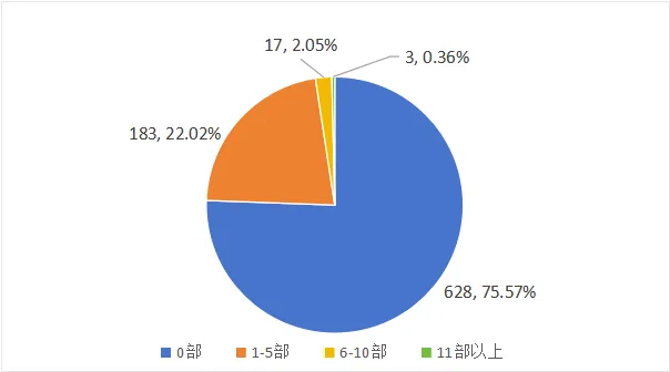 图41说明,在校长出版的非教育管理类著作中,未出版非教育管理类著作的校长有628人,占比75.57%。在非教育管理类著作出版的校长中,有1位出版数最多的校长在任期间共出版著作16部;出版1-5部此类著作的有183位校长,占比22.02%;出版6-10部以上此类著作的有17位校长,占比2.05%;出版11部以上此类著作的校长较少,共有3人,占比0.36%。