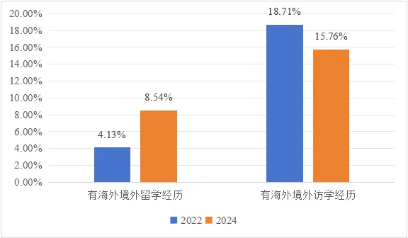 图44 2022年与2024年中国大学校长海外求学经历对比