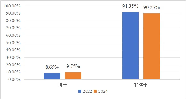 如图45所示,根据获得的公开数据显示,与2022年相比,中国大学校长中两院院士数量及占比略有提升,由67人增加至81人,占比增长1.10个百分点。