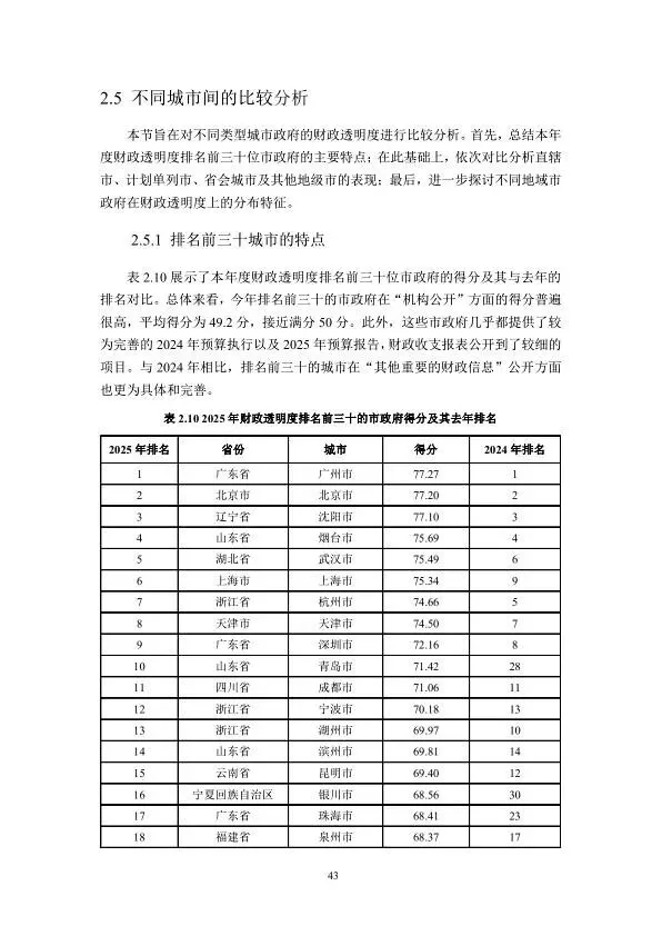 2025 年中国市级政府财政透明度研究报告
