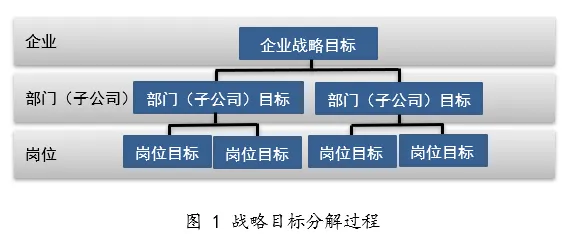 战略性绩效管理是对企业的中长期战略实施过程及结果采取一定的方法进行考核评价,并辅以相应激励机制的一种管理制度,其将企业制定的战略和目标转化成绩效目标,再将目标传递与分解(见图1),确定谁来承担和负责,然后启动实现绩效目标的计划和方案,根据绩效考核结果进行量化评价,运用绩效成绩激励员工的持续循环过程。