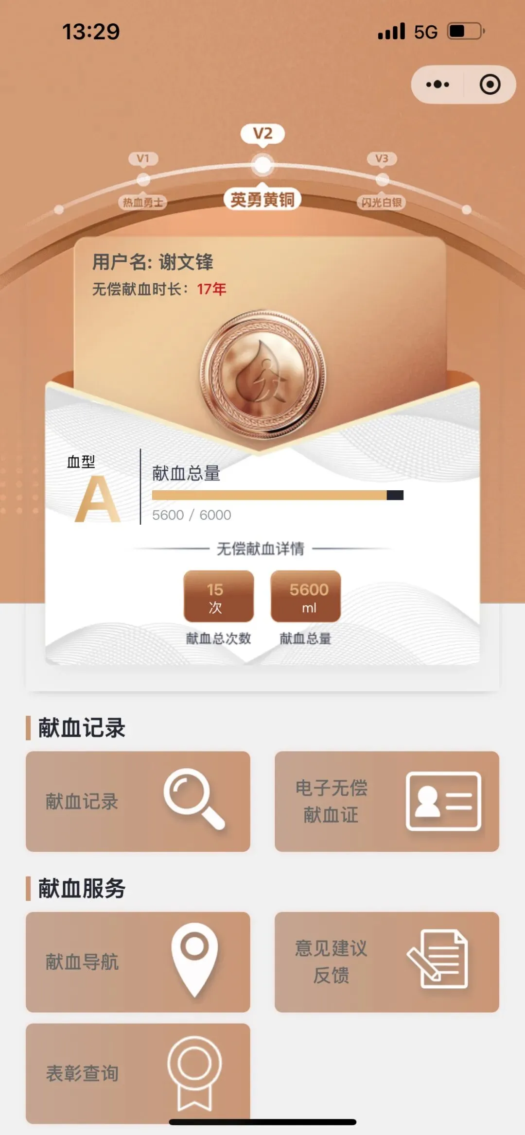 献血17年,累计5600ml