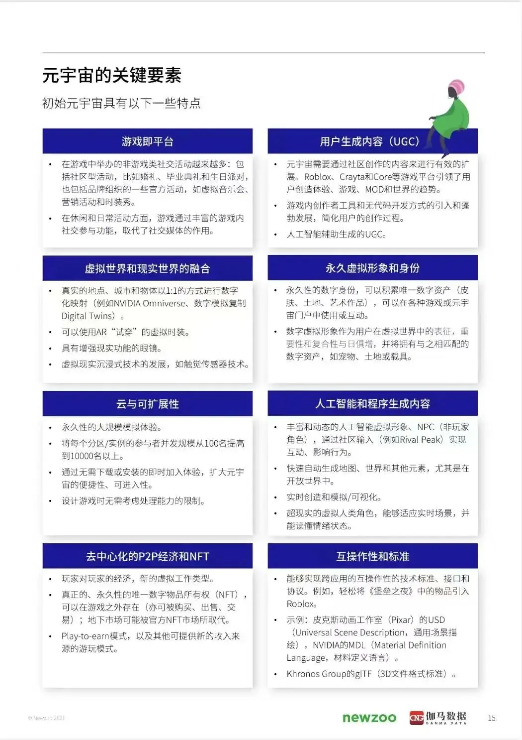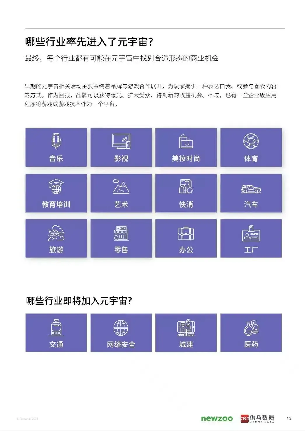 本报告将简单扼要地介绍"元宇宙"的概念演变,然后深入探讨为何游戏行业的利益相关者应当对它加以重视,以及就其在未来十年中可能出现的演变给出我们的看法。而在本报告最值得关注的利益相关者聚焦部分中,还采访了一些在实现元宇宙的道路上扮演不同角色的关键企业,包括The Sandbox、Hadean、英伟达、Unity、世纪华通、元境、中手游。