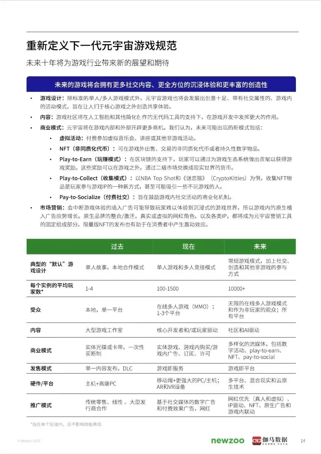 尽管在行业外的眼光中,元宇宙或许仍是一个无法实现的"遥远"概念,但事实是,我们已经生活在元宇宙的初始框架内。在我们尚未为之做好准备时,未来就已经降临。在这份报告中,希望能涵盖已近在咫尺的元宇宙机会以及元宇审概念对游戏生态系统的影响,主要探索目前被称为"元宇宙"的集合概念的直接价值所在。在报告的最后,还分享了对元宇宙概念演变的看法,主要是对游戏的影响。