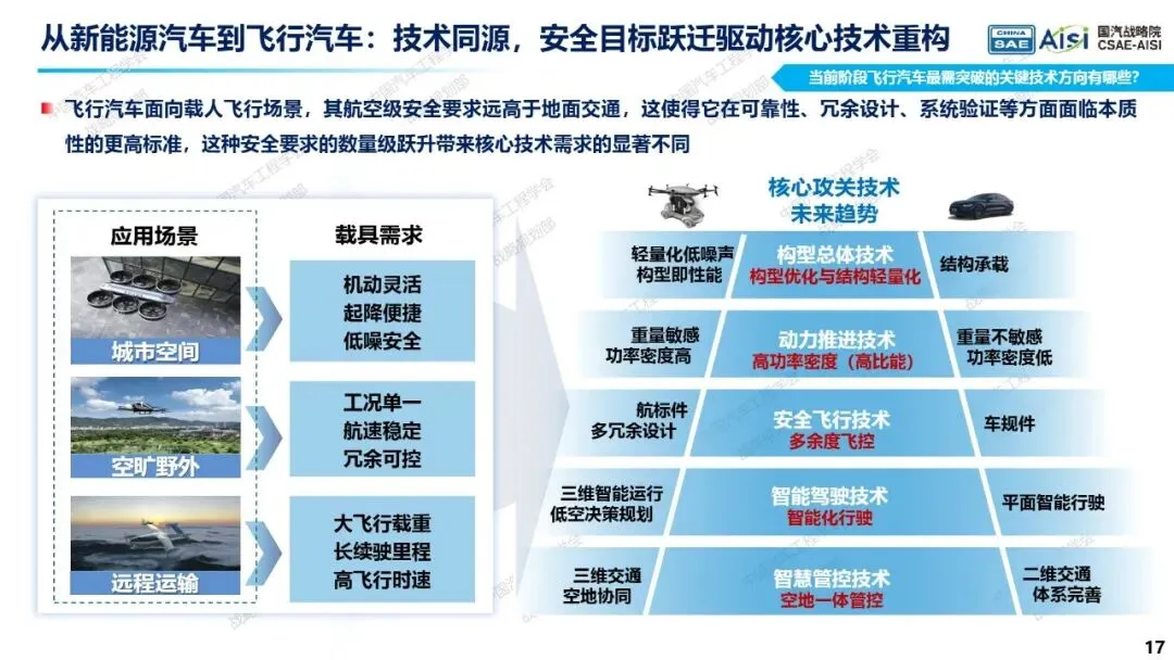 白皮书全方位覆盖飞行汽车产业应用、技术创新、支撑保障三大核心领域,直面行业发展最关切的八大核心问题——飞行汽车准确定义、应用场景拓展、技术瓶颈突破、动力路线选择、产业链协同挑战、商业模式演进、基础设施建设、法规标准体系构建,并针对性给出系统性解答,为飞行汽车产业高质量发展明晰路径、指明方向,助力空地一体交通新时代加速到来。