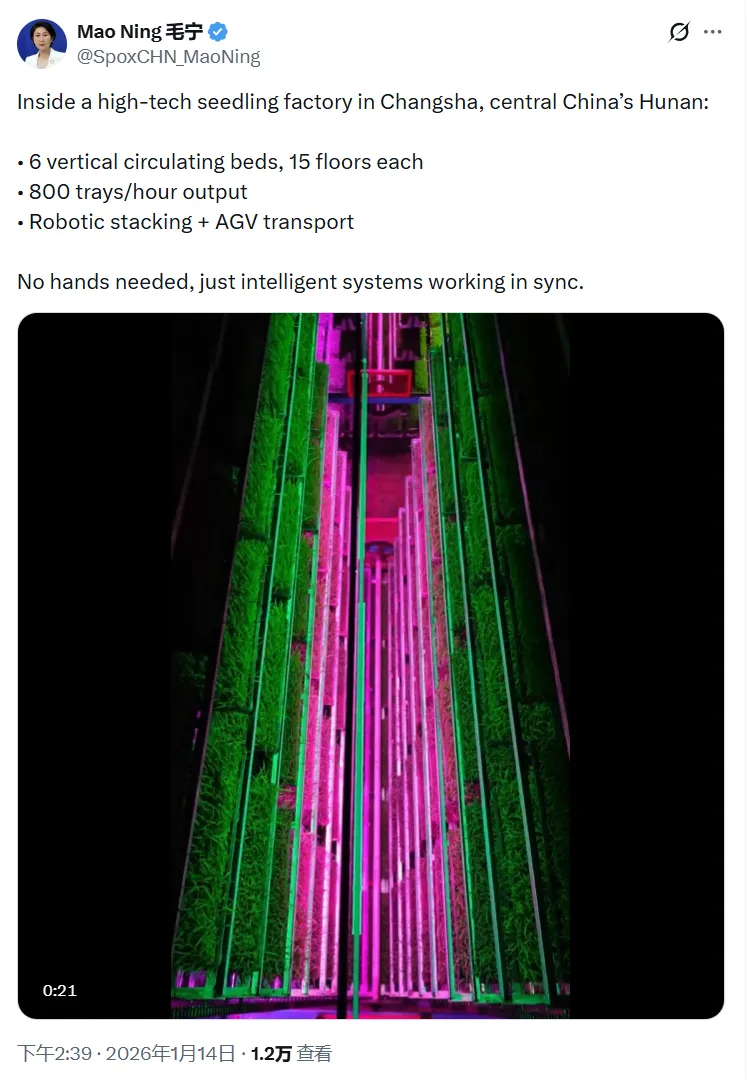 帖子介绍了这家位于湖南长沙的工厂,其内部环境及运作模式:由机器人堆叠+自动导引车运输联合作业,无需人工,仅靠智能系统即可协同工作。点赞长沙——是向世界展示“创新力”与“竞争力”的鲜活窗口!