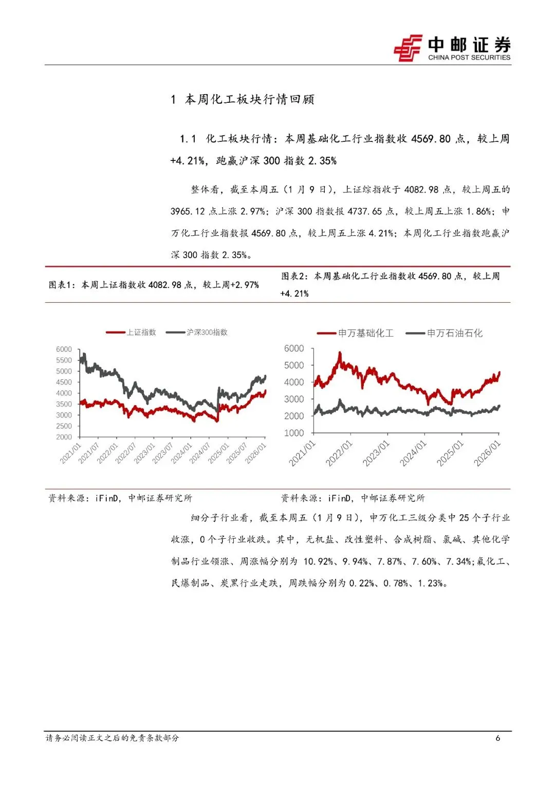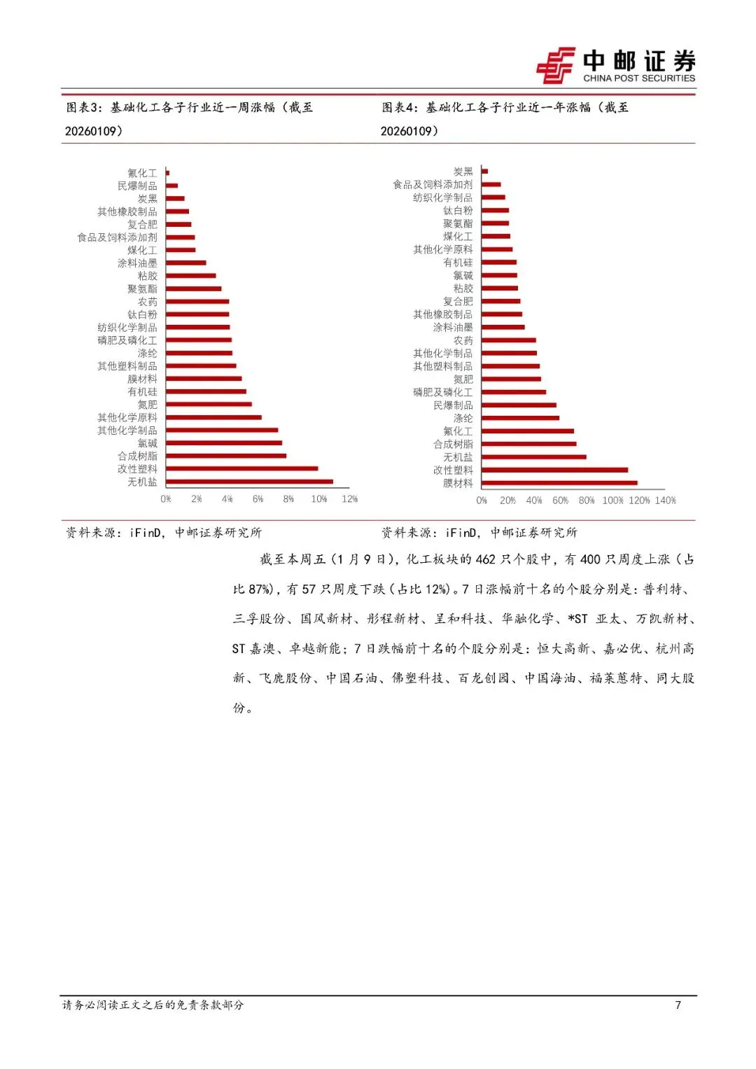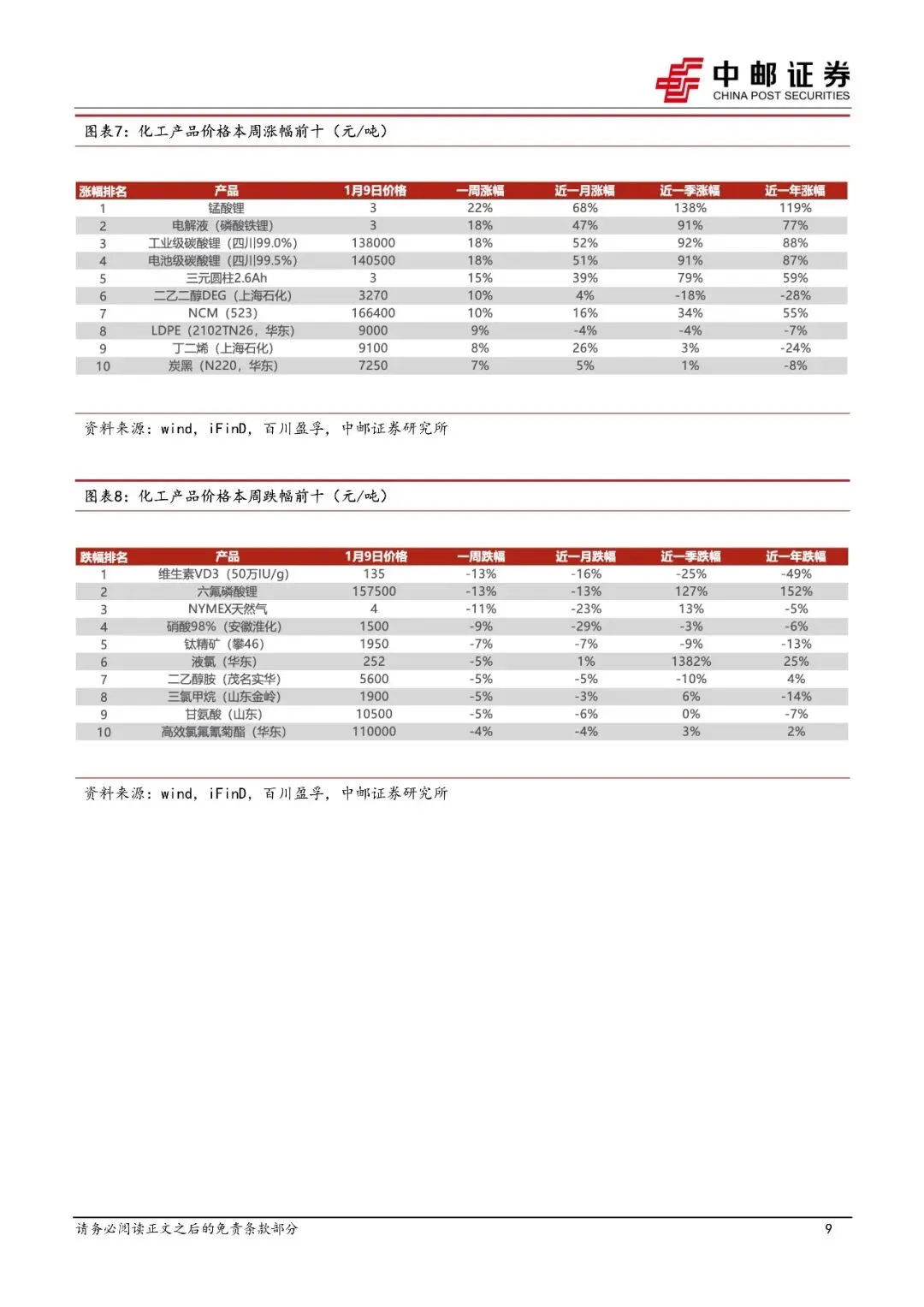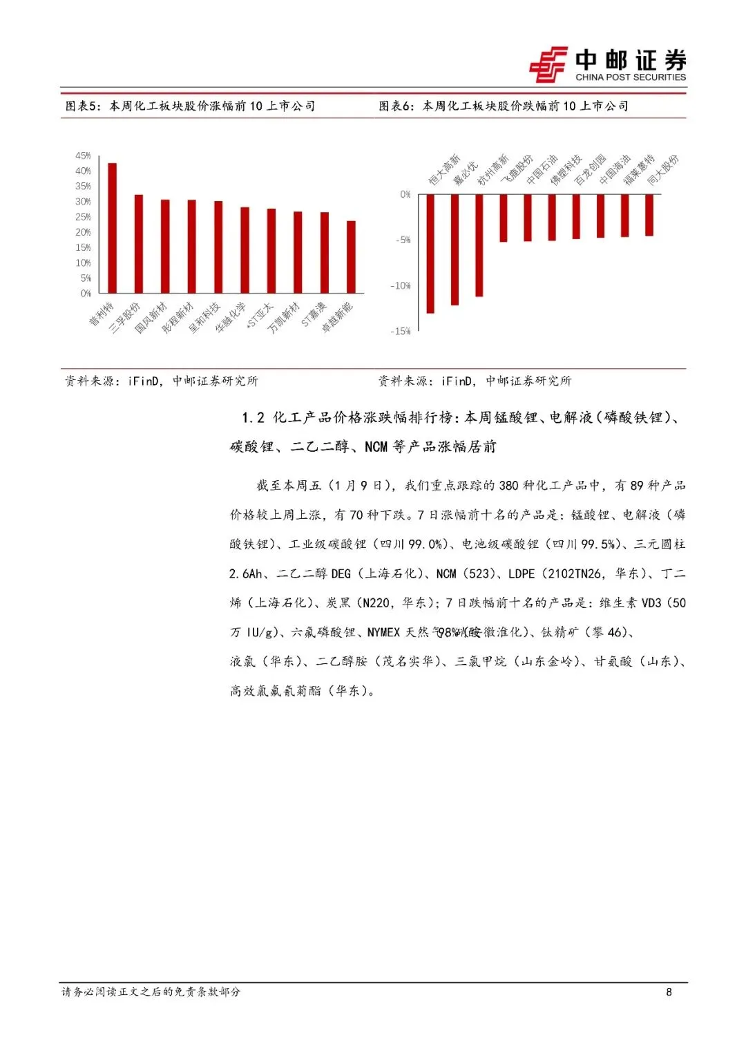 化工行业报告:化工板块维持景气度,锰酸锂、电解液(磷酸铁锂)、碳酸锂、二乙二醇、NCM等产品涨幅居前-260113-中邮证券-38页